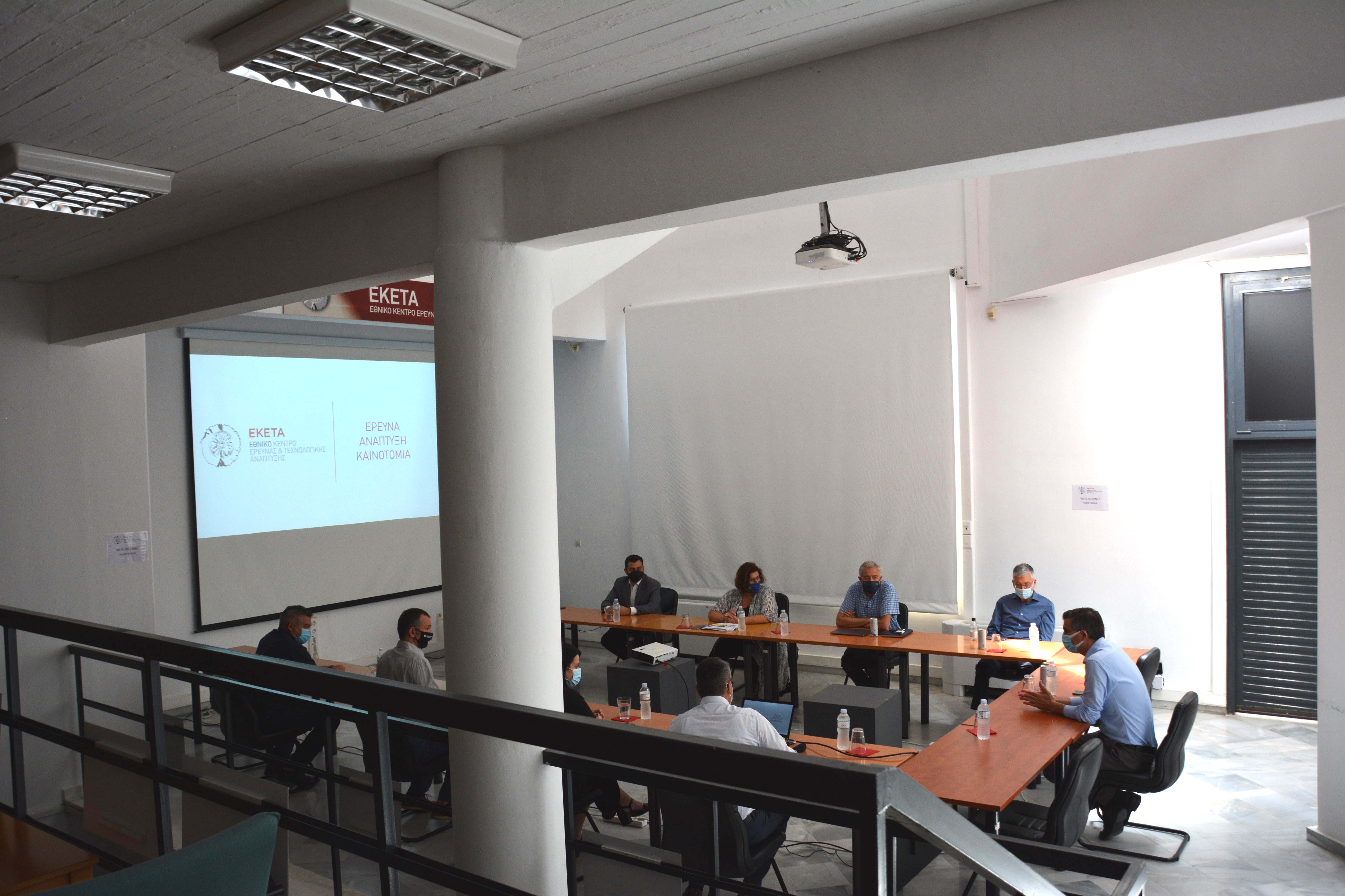 Επίσκεψη πραγματοποίησε την Παρασκευή, 2 Ιουλίου 2021, ο Υφυπουργός Ανάπτυξης και Επενδύσεων (για θέματα Έρευνας και Καινοτομίας) κ. Χρίστος Δήμας, στις εγκαταστάσεις του Εθνικού Κέντρου Έρευνας και Τεχνολογικής Ανάπτυξης (ΕΚΕΤΑ). Τον Υφυπουργό υποδέχτηκε ο Πρόεδρος του ΕΚΕΤΑ, Δρ. Δημήτριος Τζοβάρας και ακολούθησε συνάντηση με το Διοικητικό Συμβούλιο του ΕΚΕΤΑ.