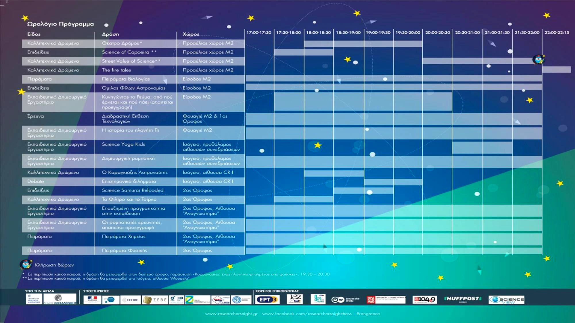 Για περισσότερες πληροφορίες οι ενδιαφερόμενοι μπορούν να επισκεφθούν το site της εκδήλωσης: www.researchersnight.gr