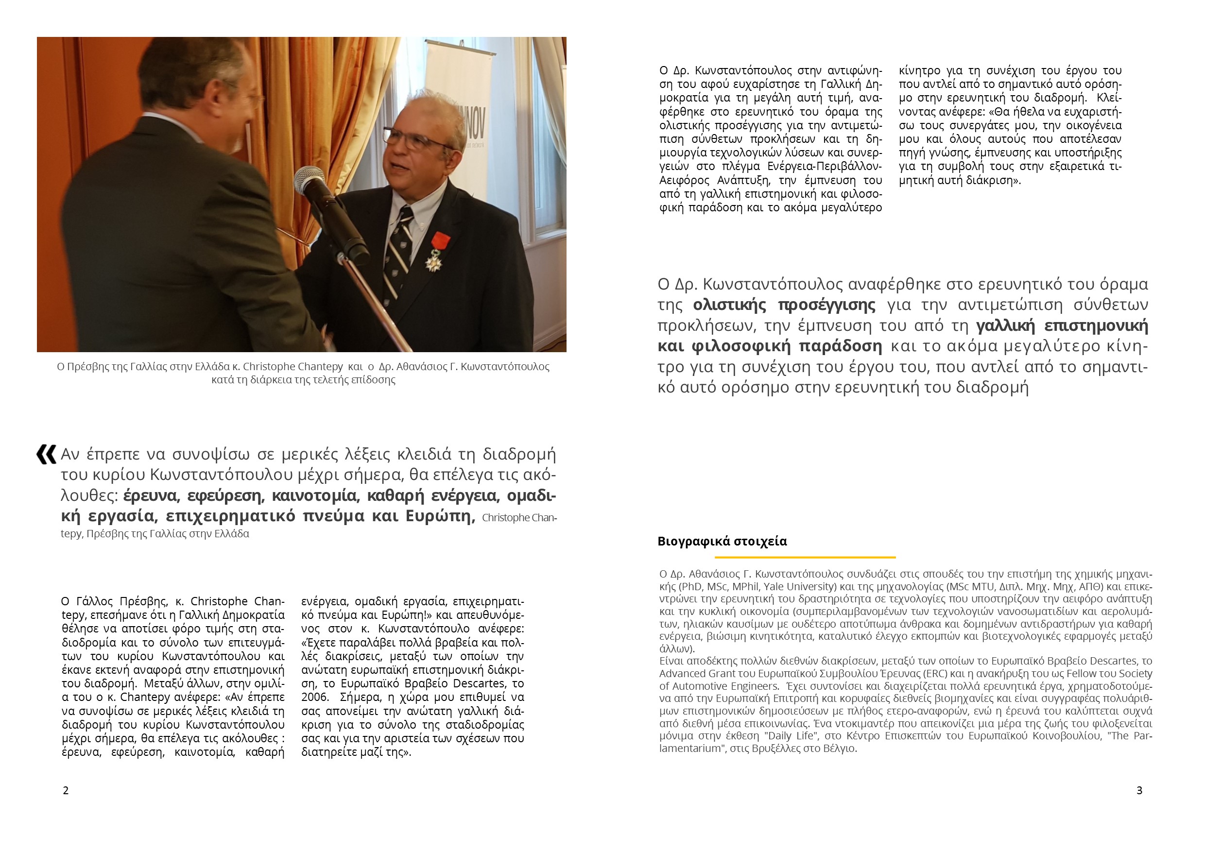 Ο Πρέσβης της Γαλλίας στην Ελλάδα κ. Christophe Chantepy επέδωσε τα διάσημα του Ιππότη του Εθνικού Τάγματος της Λεγεώνας της Τιμής (Chevalier dans l’Ordre national de la Légion d’honneur) στον Δρ. Αθανάσιο Γ. Κωνσταντόπουλο