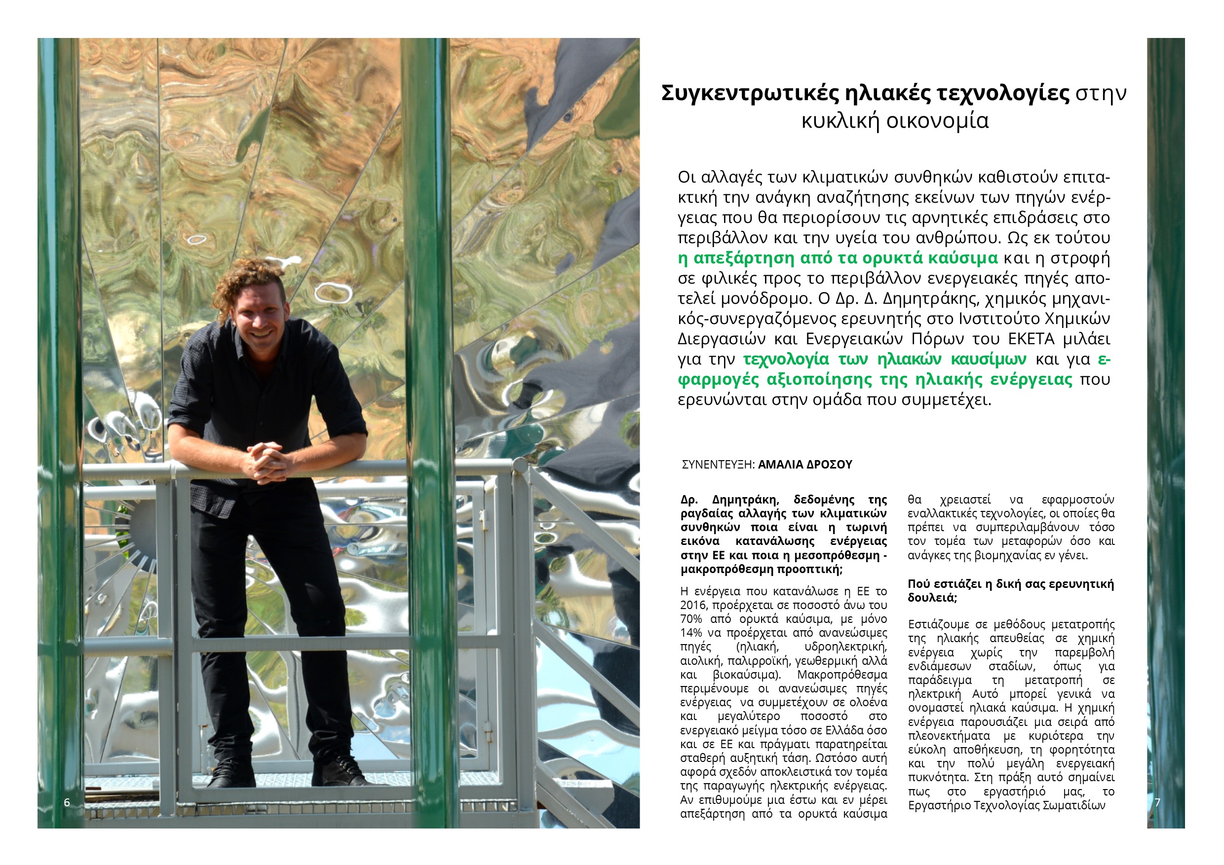 Συνέντευξη με τον Δρ. Δ. Δημητράκη για την τεχνολογία ηλιακών καυσίμων και για εφαρμογές αξιοποίησης της ηλιακής ενέργειας