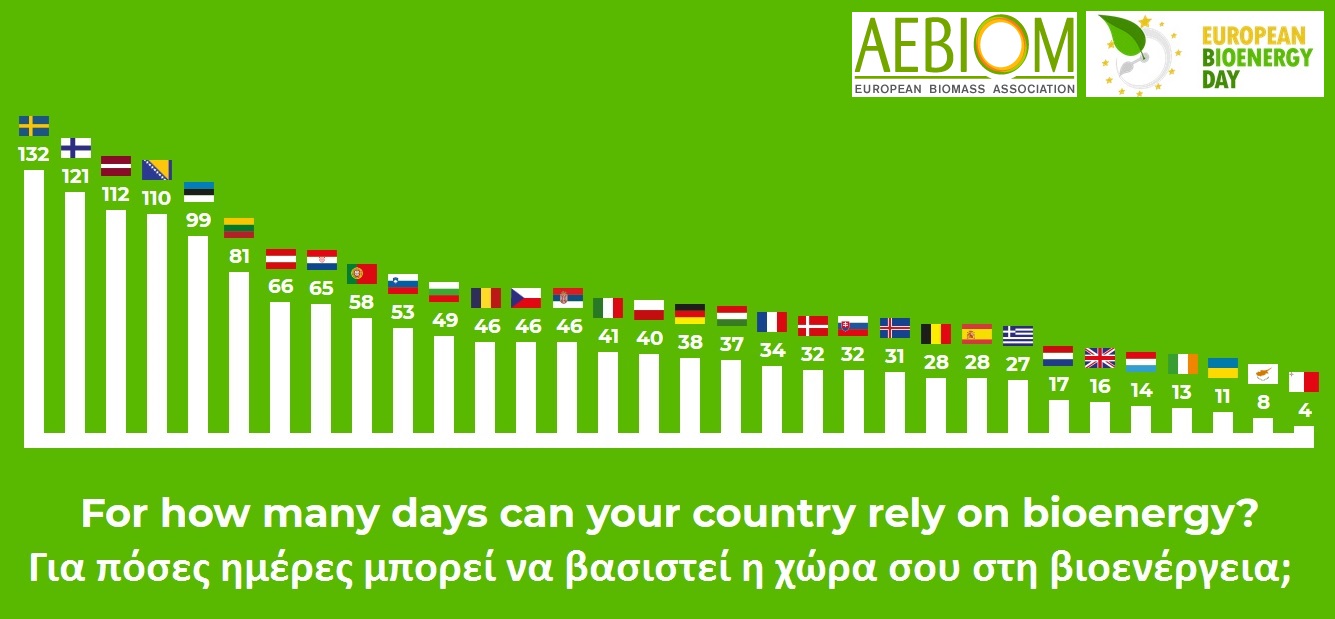 Όσον αφορά την Ελλάδα, τα στατιστικά στοιχεία των τελευταίων ετών δείχνουν ότι τα ορυκτά καύσιμα εξακολουθούν να αποτελούν την κύρια πηγή ενέργειας και αντιστοιχούν στην κάλυψη της τελικής κατανάλωσης ενέργειας για τις πρώτες 331 μέρες του χρόνου. Οι Ανανεώσιμες Πηγές Ενέργειας (ΑΠΕ) καλύπτουν τις υπόλοιπες 31 ημέρες του έτους, εκ των οποίων οι 27 αντιστοιχούν στη βιοενέργεια. Επομένως η 4η Δεκεμβρίου 2017 είναι η συμβολική ημερομηνία την οποία η ΑΕΒΙΟΜ και η ΕΛΕΑΒΙΟΜ έχουν επιλέξει για τον εορτασμό της Ελληνικής Ημέρας Βιοενέργειας και αντιστοιχεί στην ημέρα από την οποία και μετά η Ελλάδα θα μπορούσε θεωρητικά να τροφοδοτείται με βιοενέργεια μέχρι το τέλος του έτους.