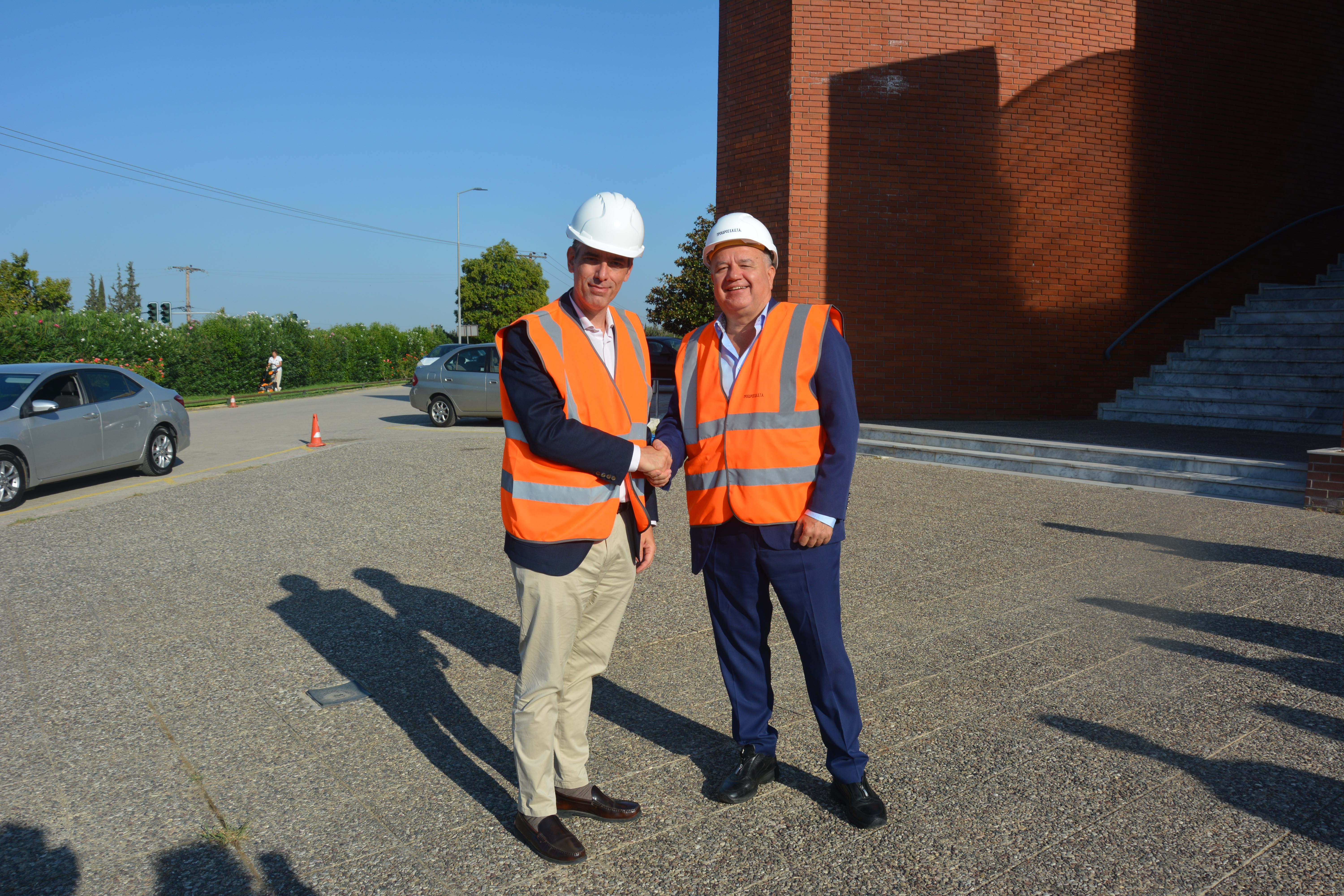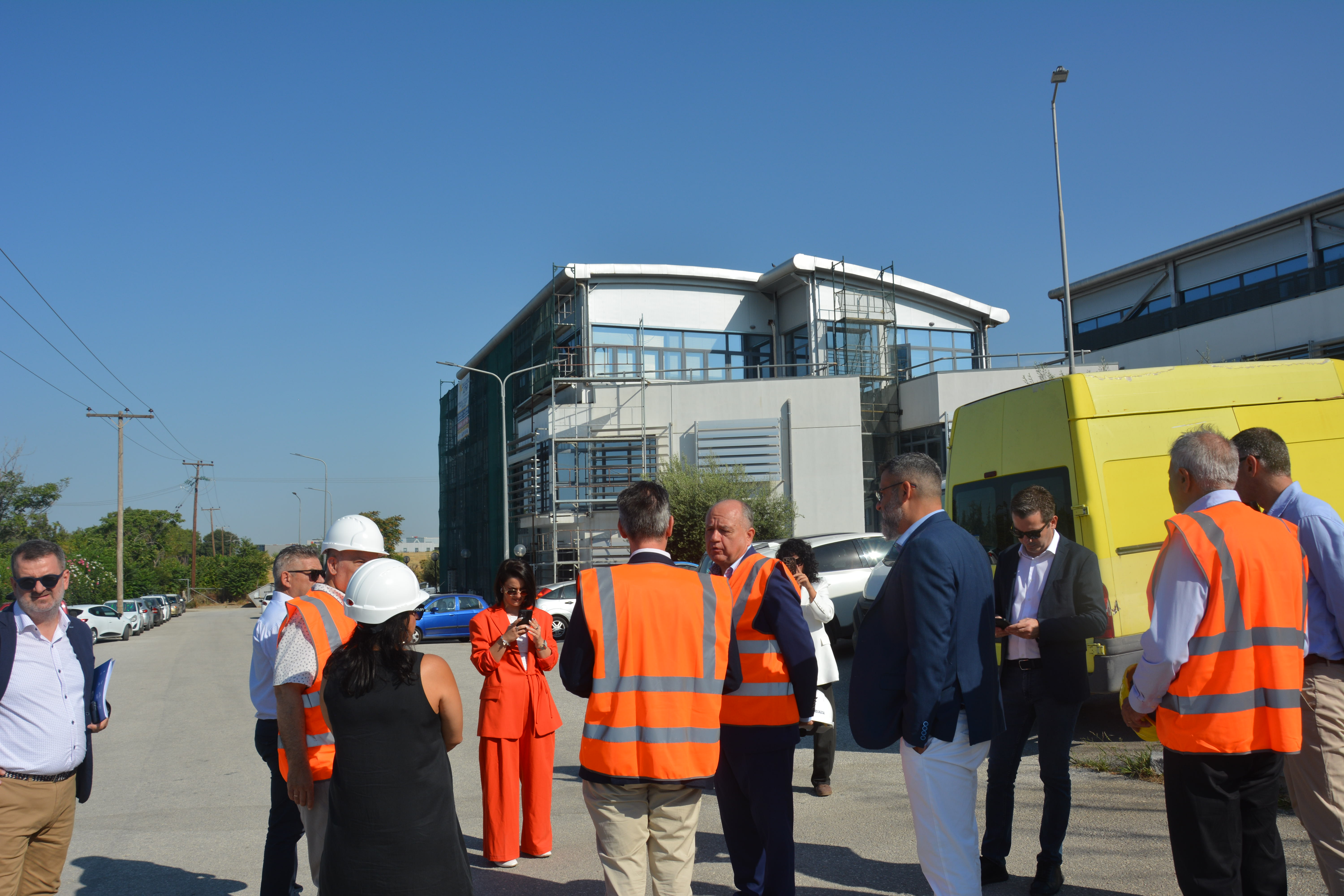 Αρχικά ο κ. Γαιτάνης επισκέφθηκε το κτίριο AΙ Nucleus του Ινστιτούτου Τεχνολογιών Πληροφορικής και Επικοινωνιών (ΙΠΤΗΛ) του ΕΚΕΤΑ, που οδεύει προς την ολοκλήρωσή του και βρίσκεται  εντός του πάρκου υψηλής τεχνολογίας της «Τεχνόπολης, ο κ. Γαϊτάνης ενημερώθηκε για τις υπηρεσίες, που αυτό θα προσφέρει και οι οποίες θα βελτιώσουν τις γραμμές παραγωγής, λαμβάνοντας υπόψη τα σύγχρονα τεχνολογικά δεδομένα της 4ης Βιομηχανικής Επανάστασης.