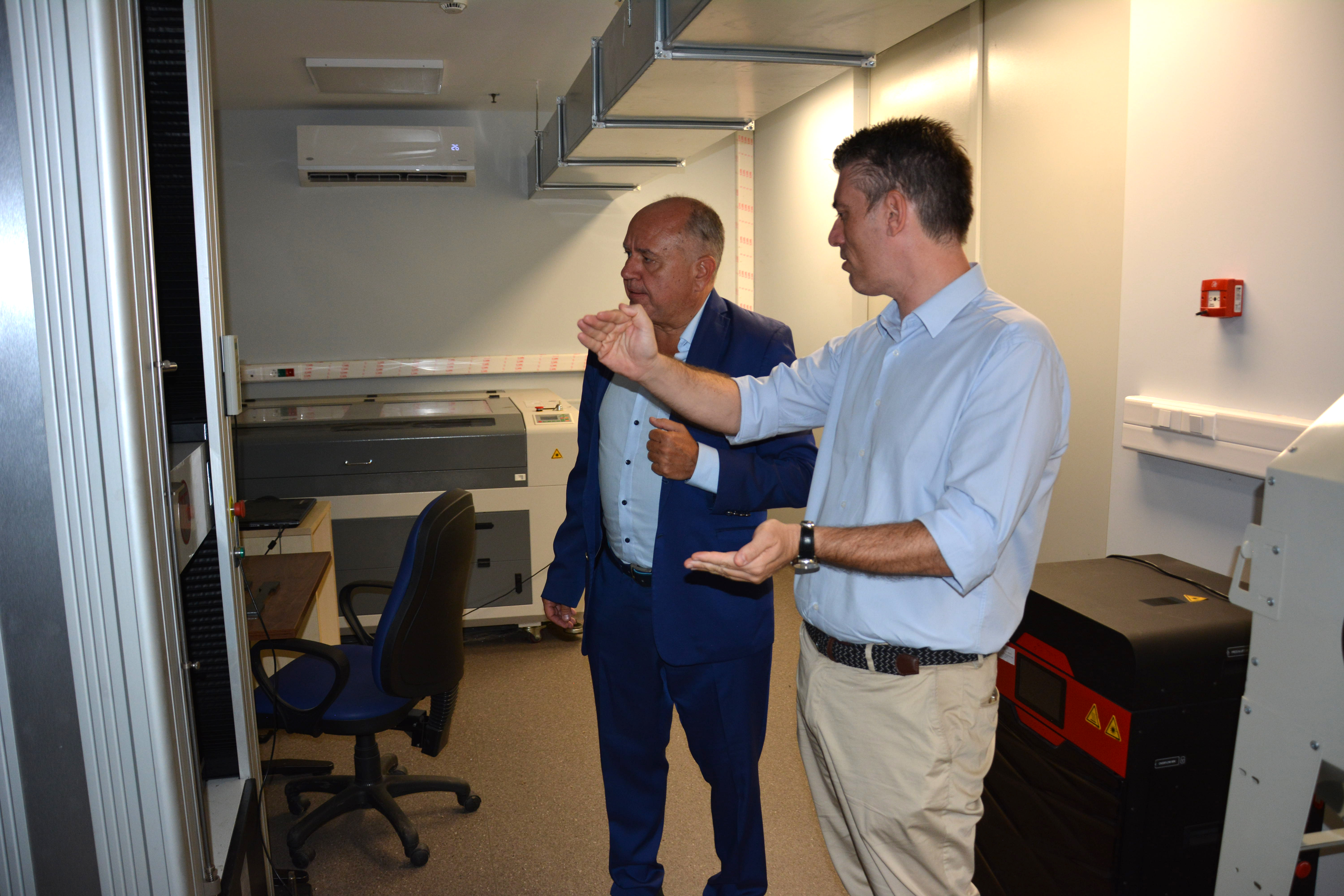 Η ξενάγηση ολοκληρώθηκε με την επίσκεψη του κ. Γαϊτάνη στο Ινστιτούτο Βιώσιμης Κινητικότητας και Δικτυών Μεταφορών (ΙΜΕΤ). Στο Ζωντανό Εργαστήριο Έξυπνης Κινητικότητας ο Γενικός Γραμματέας έλαβε γνώση για συστήματα διαχείρισης μεταφορών, ενώ είδε από κοντά τον δυναμικό προσομοιωτή οδήγησης αυτοκινήτου, ο οποίος ενδείκνυται για την μελέτη επικίνδυνων καταστάσεων οδήγησης που δεν θα ήταν ασφαλείς σε πραγματικές συνθήκες αλλά και πιστοποιήσεις ικανότητας οδήγησης μετά από λήψη φαρμάκων. Τέλος ο κ. Γαϊτάνης επισκέφθηκε το Fab Lab όπου και ενημερώθηκε για τη δυνατότητα σχεδίασης κάθετα και πλήρως νέων προϊόντων μέσω ανάπτυξης πρωτοτύπων και δοκιμών αυτών σε εφαρμογές μεταφορικών μέσων, υποδομών και logistics.