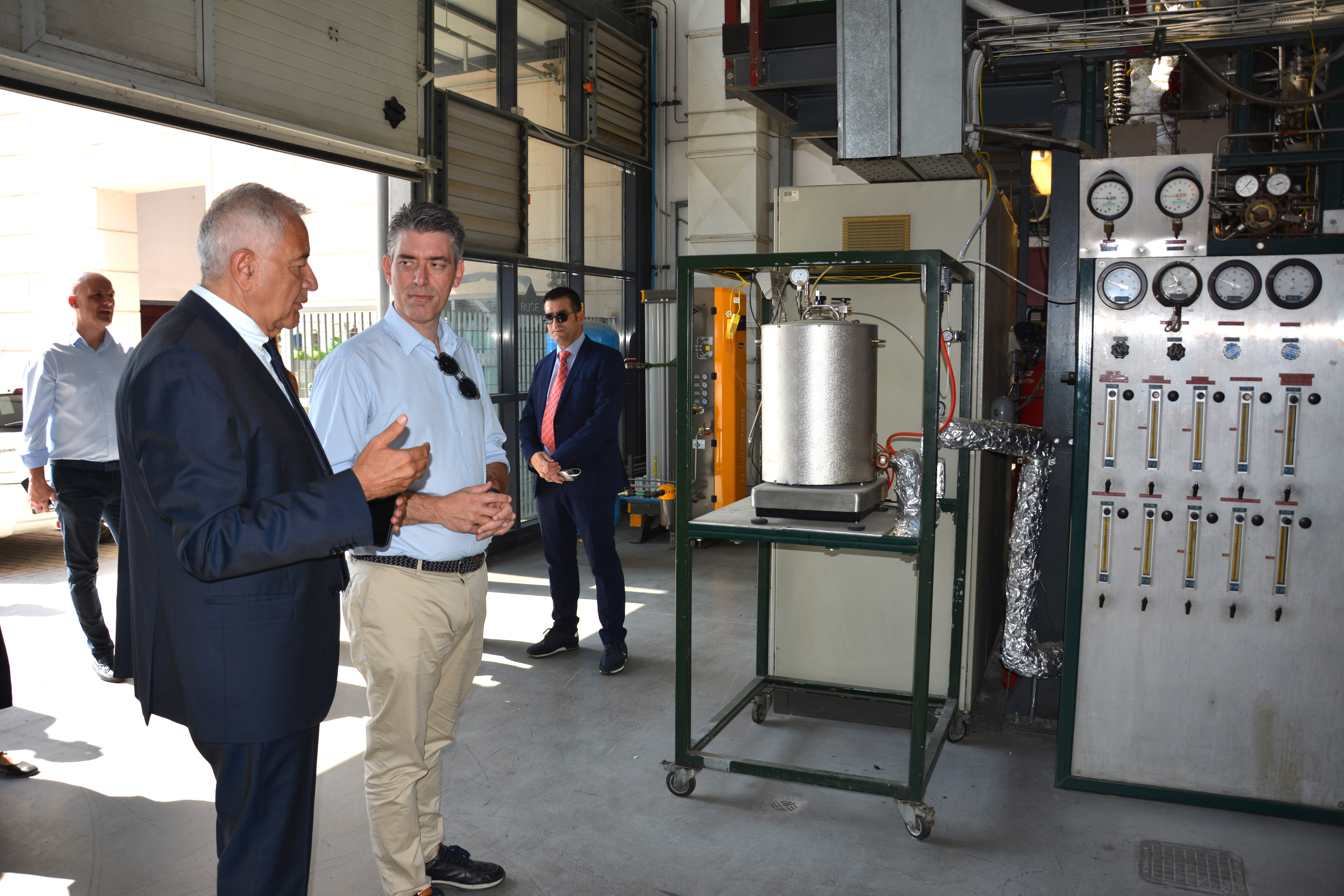 Ακολούθησε επίσκεψη του κ. Γαϊτάνη στο Εργαστήριο Μεγάλου Ύψους του Ινστιτούτου Χημικών Διεργασιών και Ενεργειακών Πόρων (ΙΔΕΠ), όπου και πληροφορήθηκε τόσο για την μακρόχρονη προσέλκυση χρηματοδότησης της έρευνας από εταιρίες υδρογονανθράκων, αλλά και για την έρευνα στην παραγωγή νέας γενιάς καυσίμων με βάση τα βιο-έλαια καθώς και για τις σύγχρονες προκλήσεις στον τομέα της καθαρής ενέργειας με τεχνολογίες υδρογόνου, δέσμευσης διοξειδίου του άνθρακα και τα υλικά που συμβάλλουν σε αυτές τις τεχνολογίες.