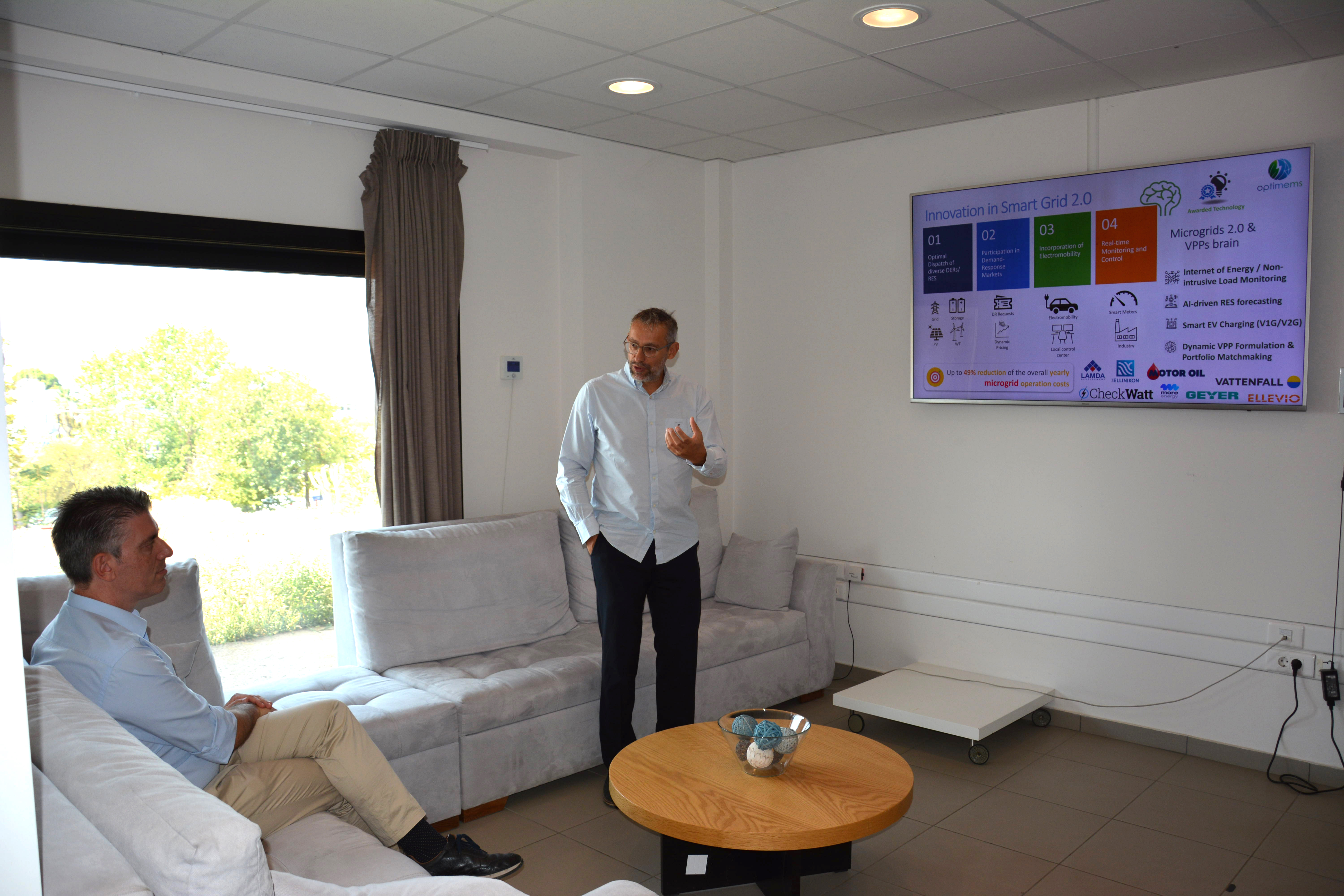 Αμέσως μετά στο Έξυπνο Σπίτι είχε την ευκαιρία να πληροφορηθεί για καινοτόμες τεχνολογίες που υποστηρίζουν την αυτόνομη διαβίωση των ηλικιωμένων, και τεχνολογίες εξοικονόμησης ενέργειας με τη συνδυαστική χρήση ανανεώσιμων πηγών και αποθήκευσης ενέργειας (Μικροδίκτυα Νέας Γενιάς).
