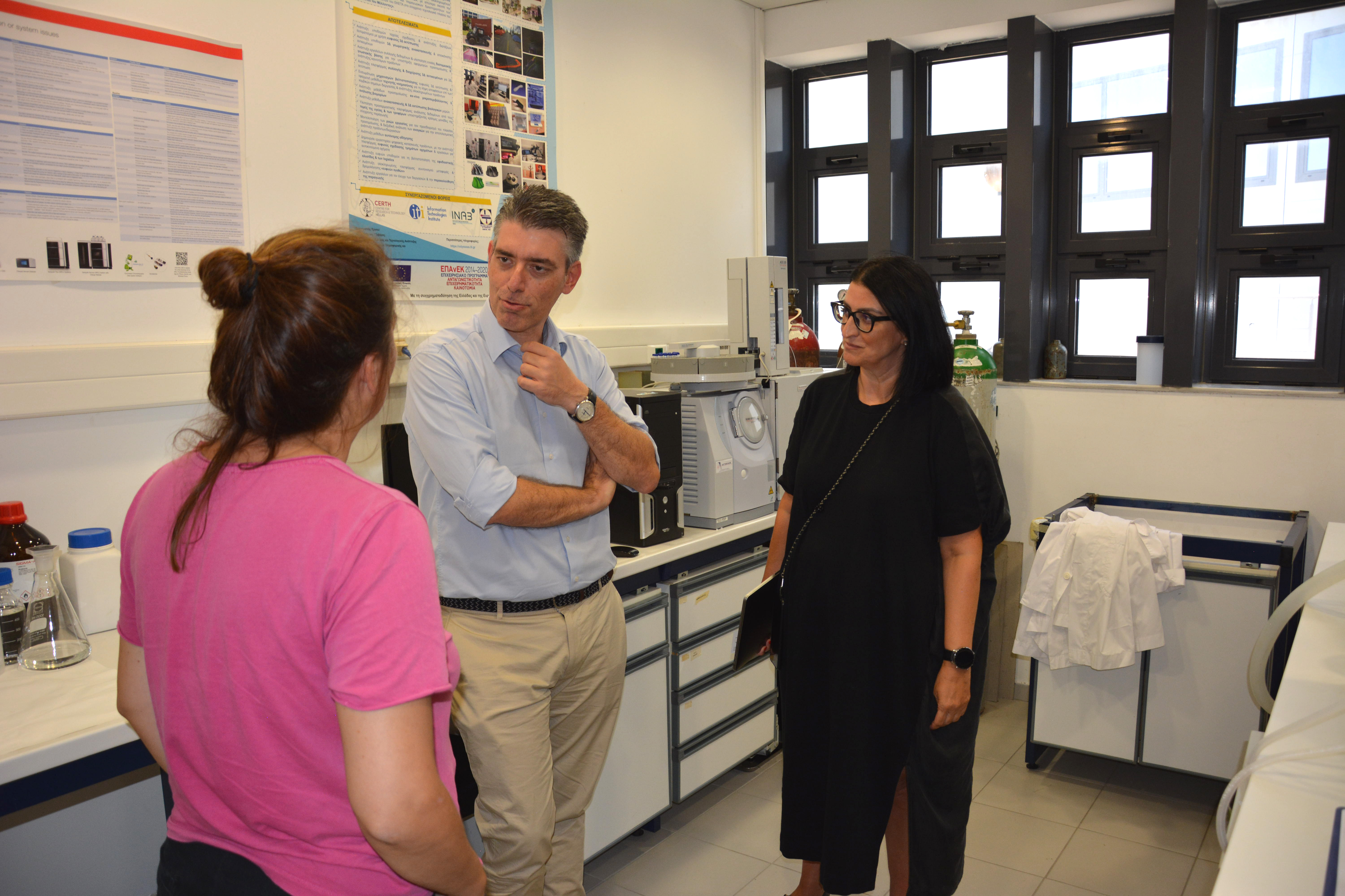 Η επίσκεψη συνεχίστηκε με την ξενάγηση του κ. Γαϊτάνη στις υποδομές και τα εργαστήρια του ΕΚΕΤΑ. Στο Ινστιτούτο Τεχνολογιών Πληροφορικής και Επικοινωνιών (ΙΠΤΗΛ), ιδιαίτερο ήταν το ενδιαφέρον του για την πρότυπη υποδομή του IsZEB container, όπου και ενημερώθηκε για συνδυαστικές λύσεις για ενεργειακή αποδοτικότητα και ευφυΐα ακόμα και σε υποδομές μικρής κλίμακας, και τη σημασία της ολιστικής προσέγγισης της αξιολόγησης ενός κτιρίου προκειμένου να επιτευχθούν τα βέλτιστα αποτελέσματα βιωσιμότητας.
