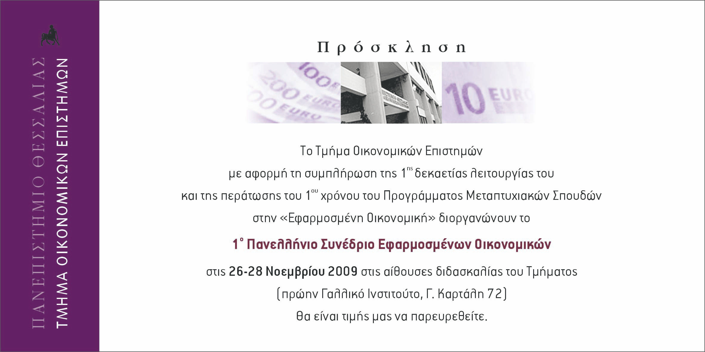 [Διοργάνωση: Τμ. Οικονομικών Επιστημών του Παν. Θεσσαλίας]
