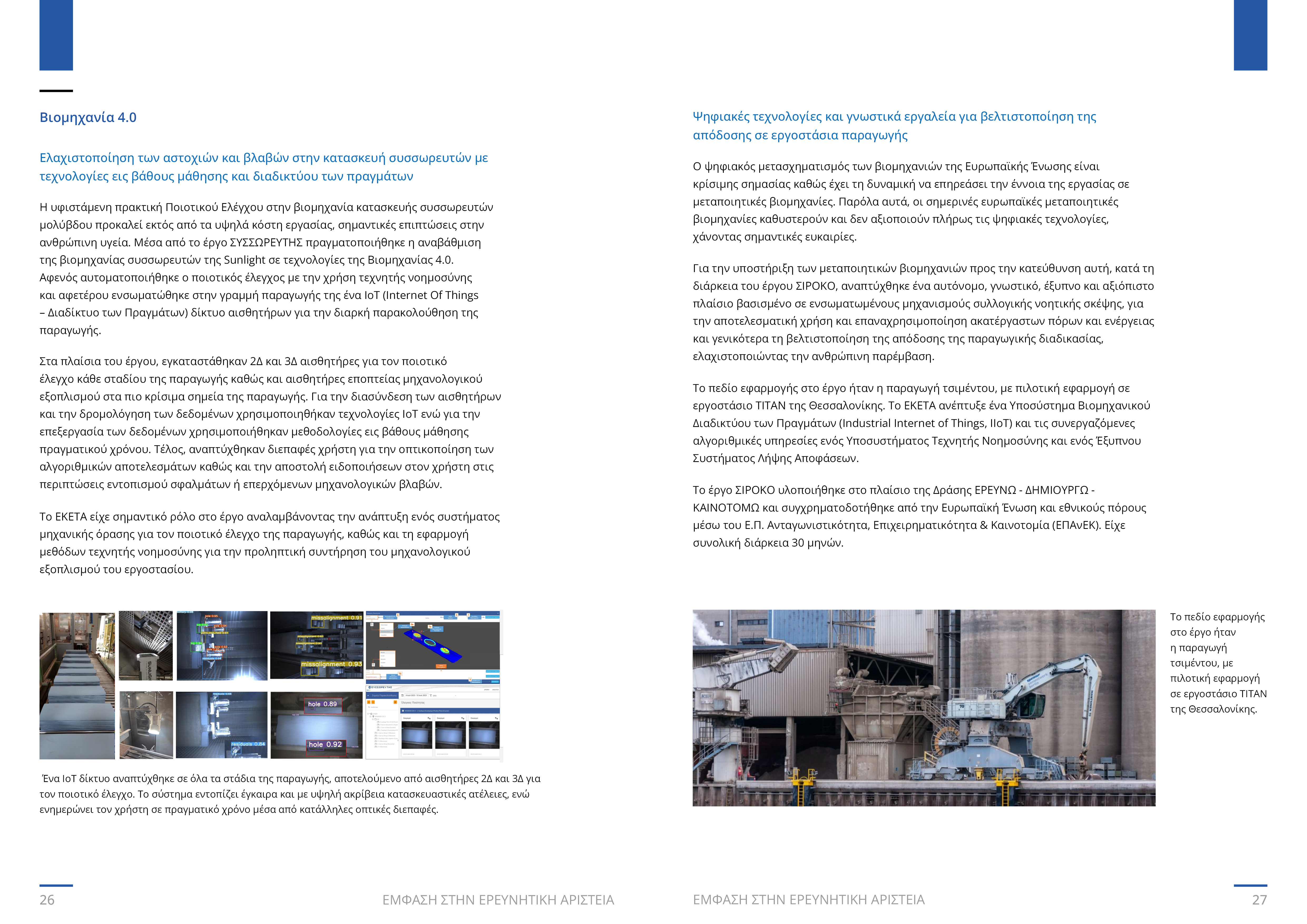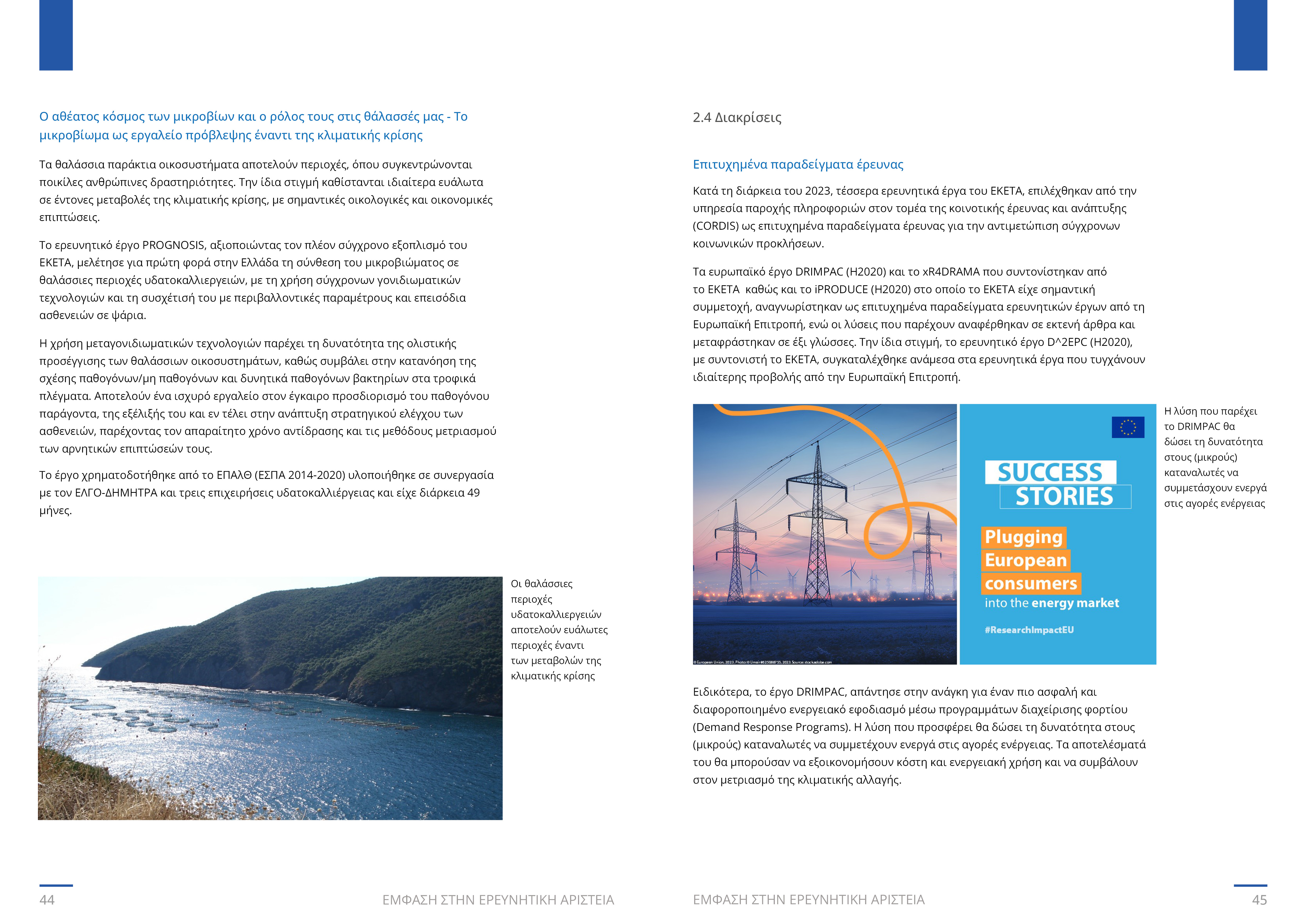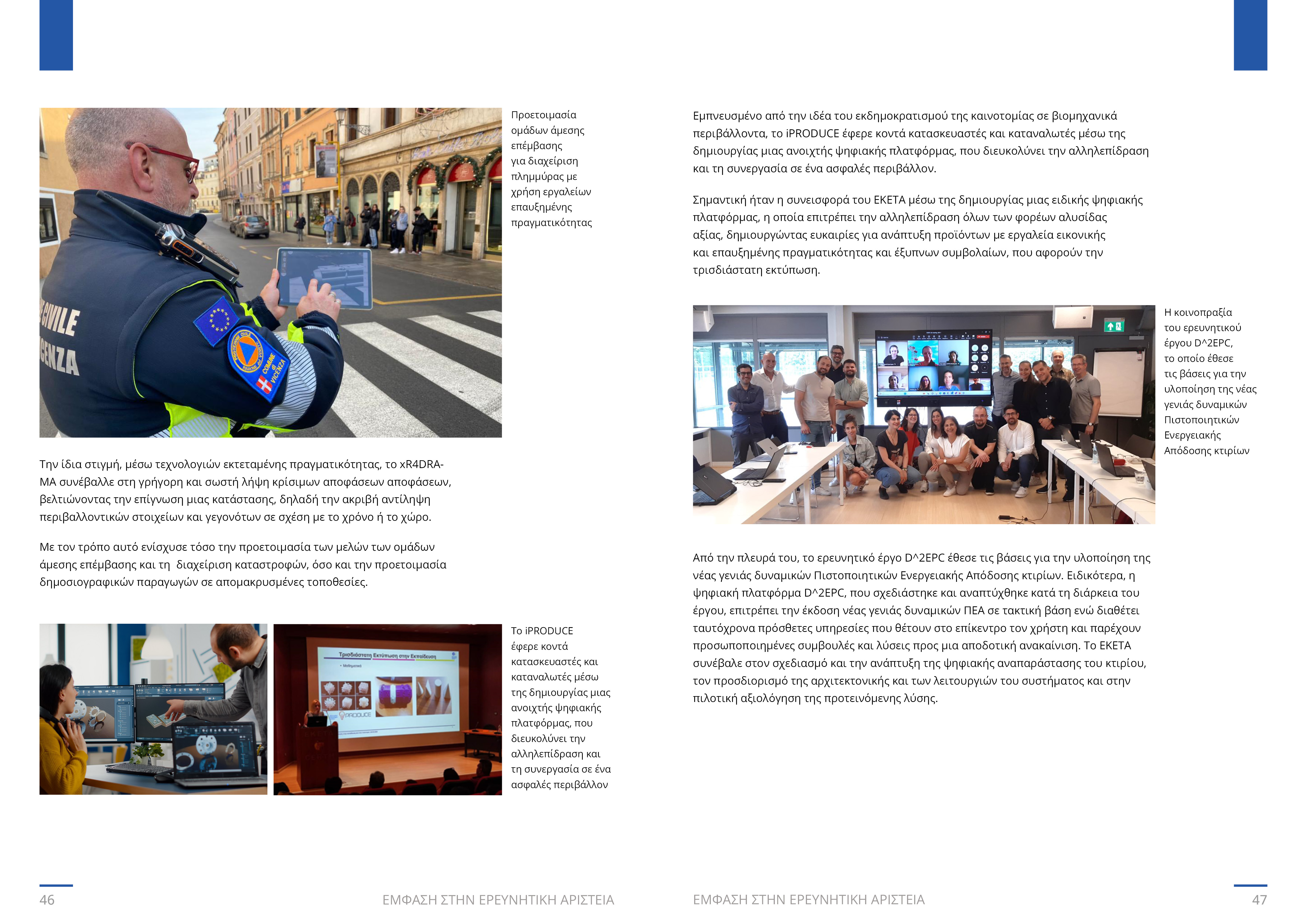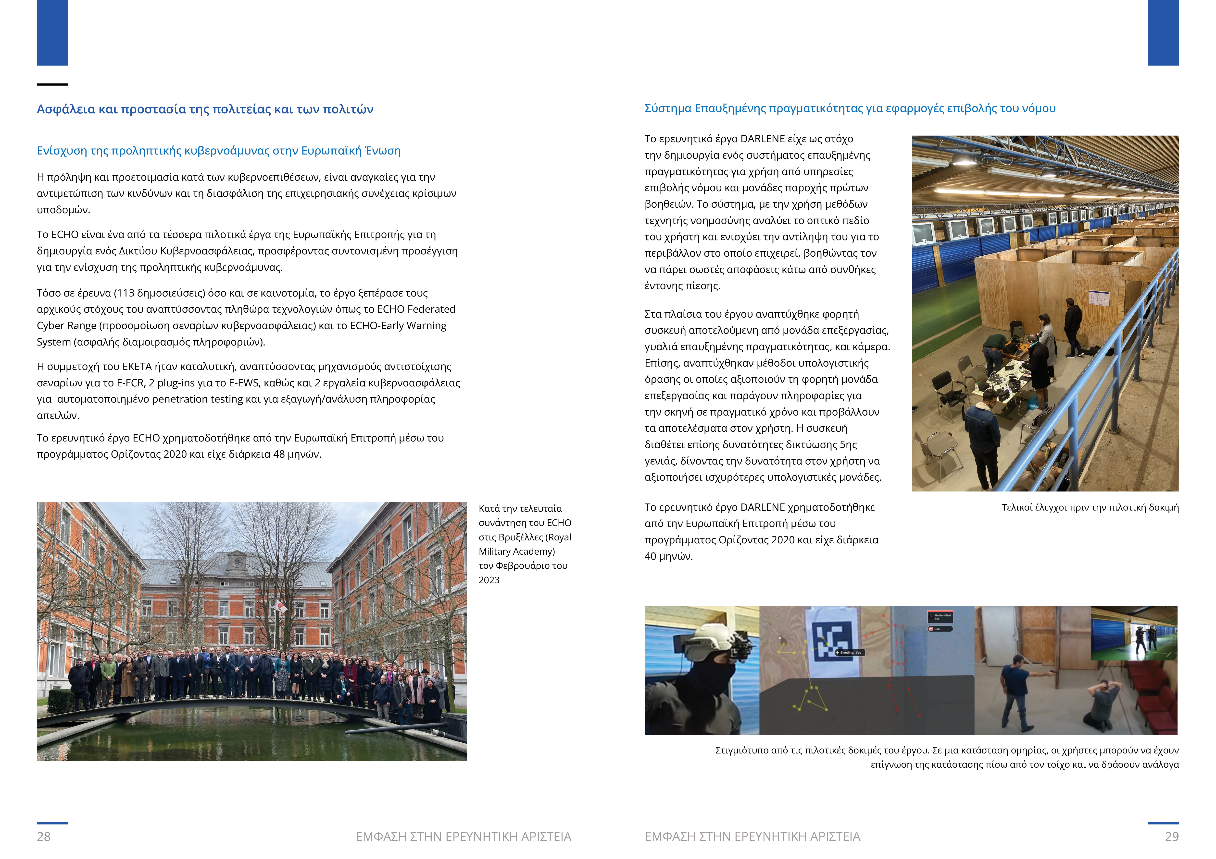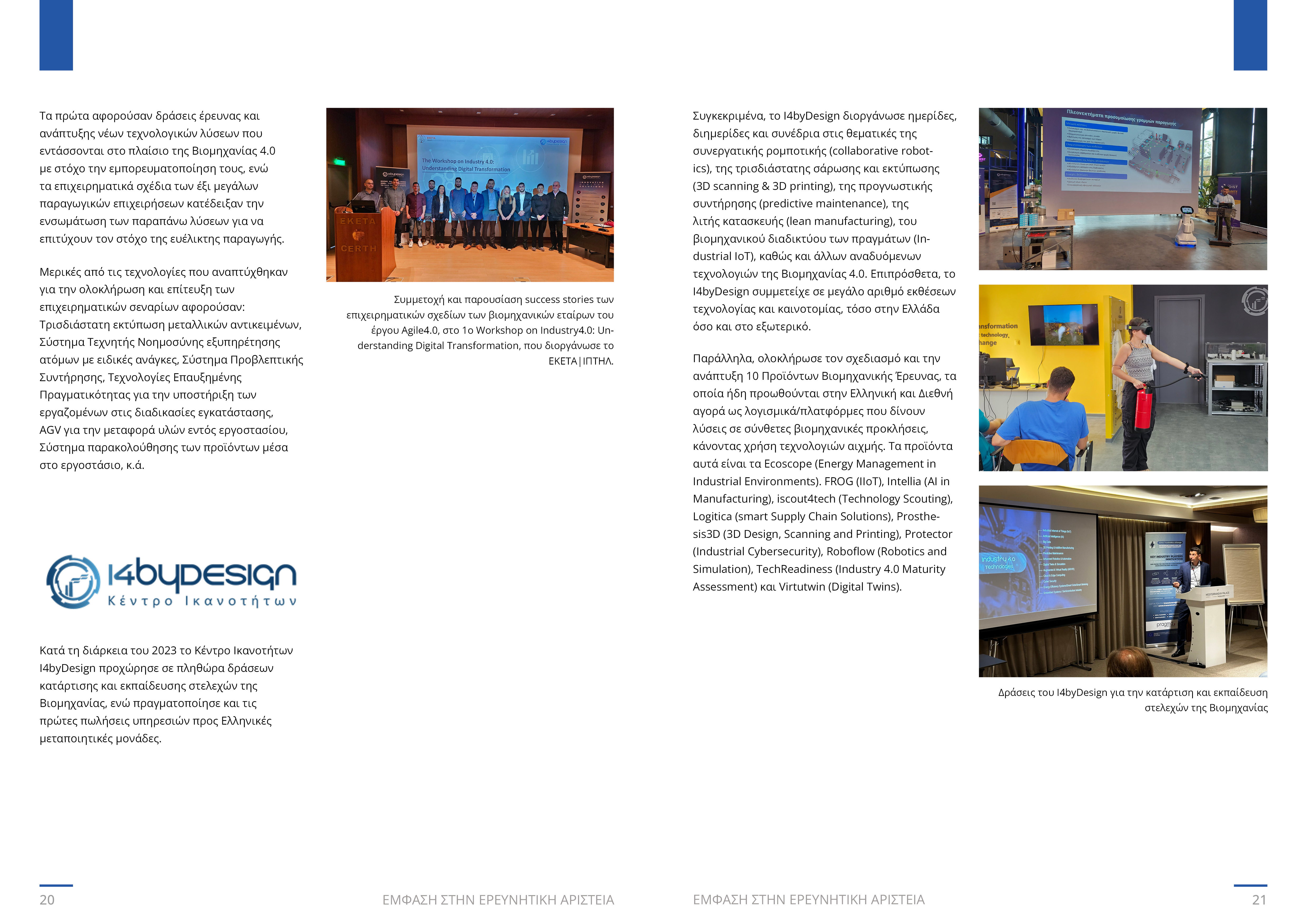 Η Έκθεση Πεπραγμένων 2023 του Εθνικού Κέντρου Έρευνας και Τεχνολογικής Ανάπτυξης παρουσιάζει συνοπτικά τις εξελίξεις και την πρόοδο του Ερευνητικού Κέντρου σε επίπεδο στοιχείων και αριθμών, αναπτυξιακών δράσεων, ανθρώπινου δυναμικού, καινοτόμων ερευνητικών αποτελεσμάτων, συνεργασιών με τη βιομηχανία και επιχειρηματικών πρωτοβουλιών. Παράλληλα, ιδιαίτερη αναφορά γίνεται στον αντίκτυπο του έργου του ΕΚΕΤΑ στους πολίτες και την κοινωνία.