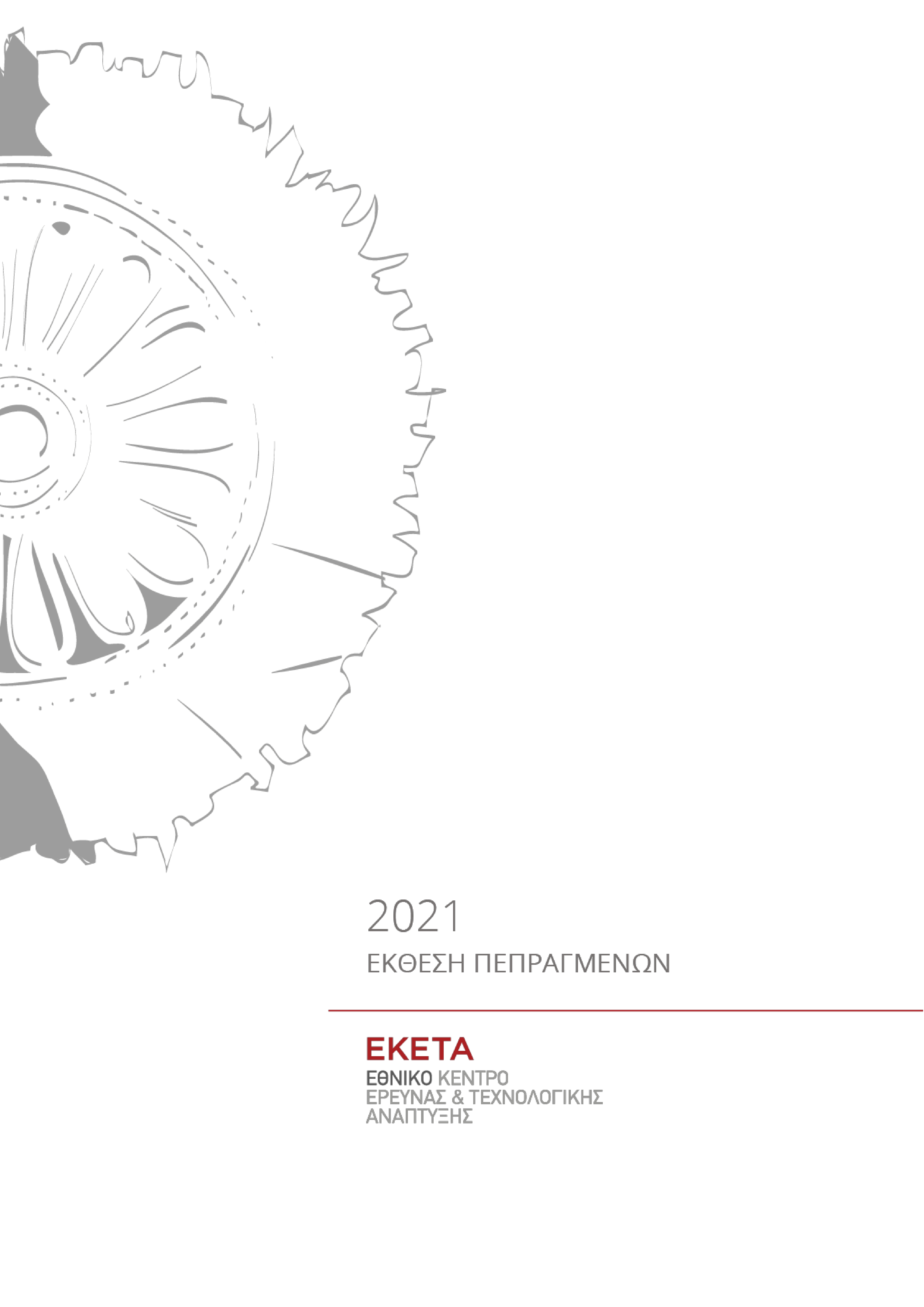 Η παρούσα Έκθεση Πεπραγμένων 2021 του Εθνικού Κέντρου Έρευνας και Τεχνολογικής Ανάπτυξης παρουσιάζει την πρόοδο του Ερευνητικού Κέντρου σε επίπεδο αναπτυξιακών δράσεων, ανθρώπινου δυναμικού, καινοτόμων ερευνητικών αποτελεσμάτων, συνεργασιών με τη βιομηχανία και επιχειρηματικών πρωτοβουλιών. Παράλληλα, ιδιαίτερη αναφορά γίνεται στην αντανάκλαση του έργου του ΕΚΕΤΑ στους πολίτες και την κοινωνία.