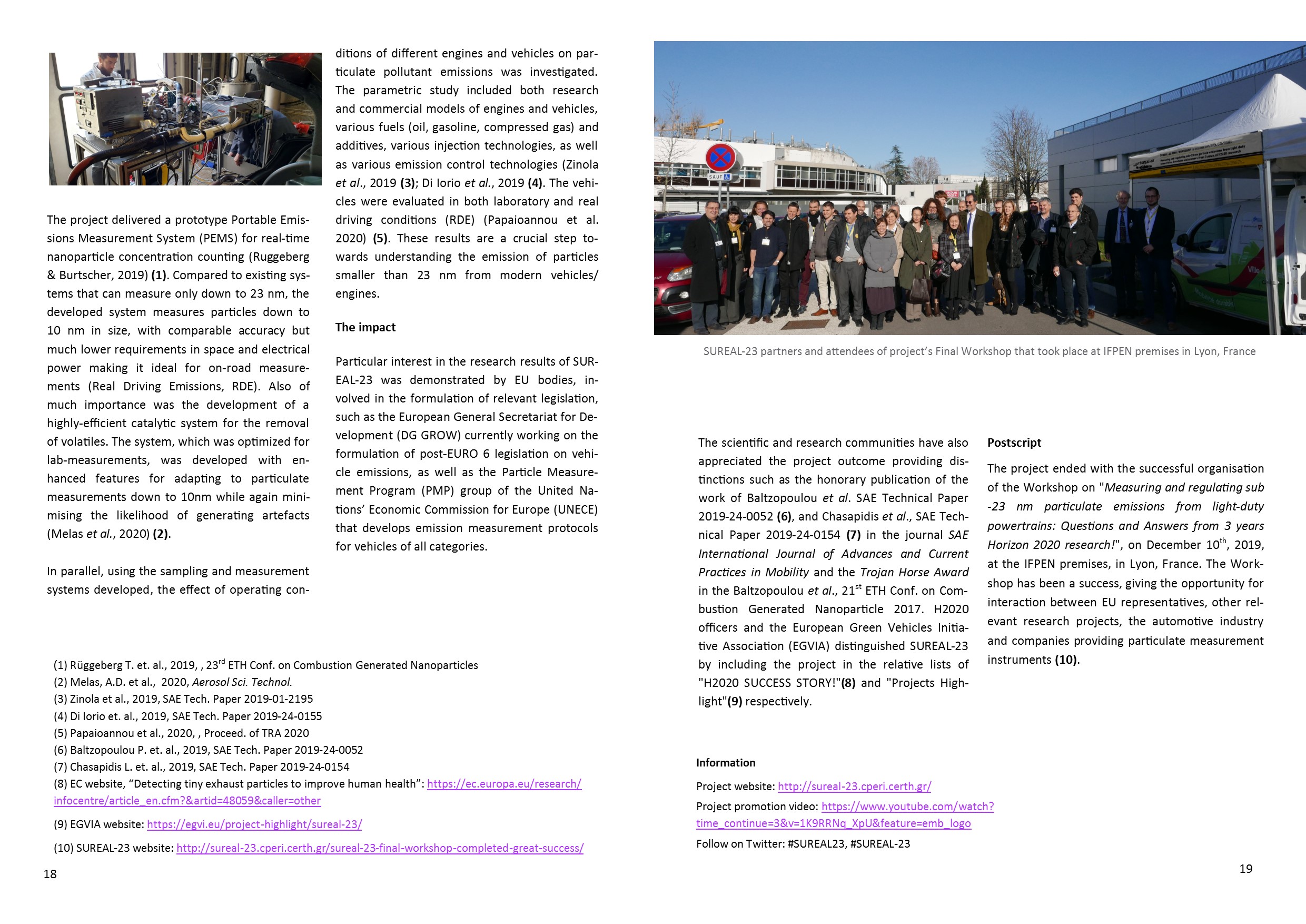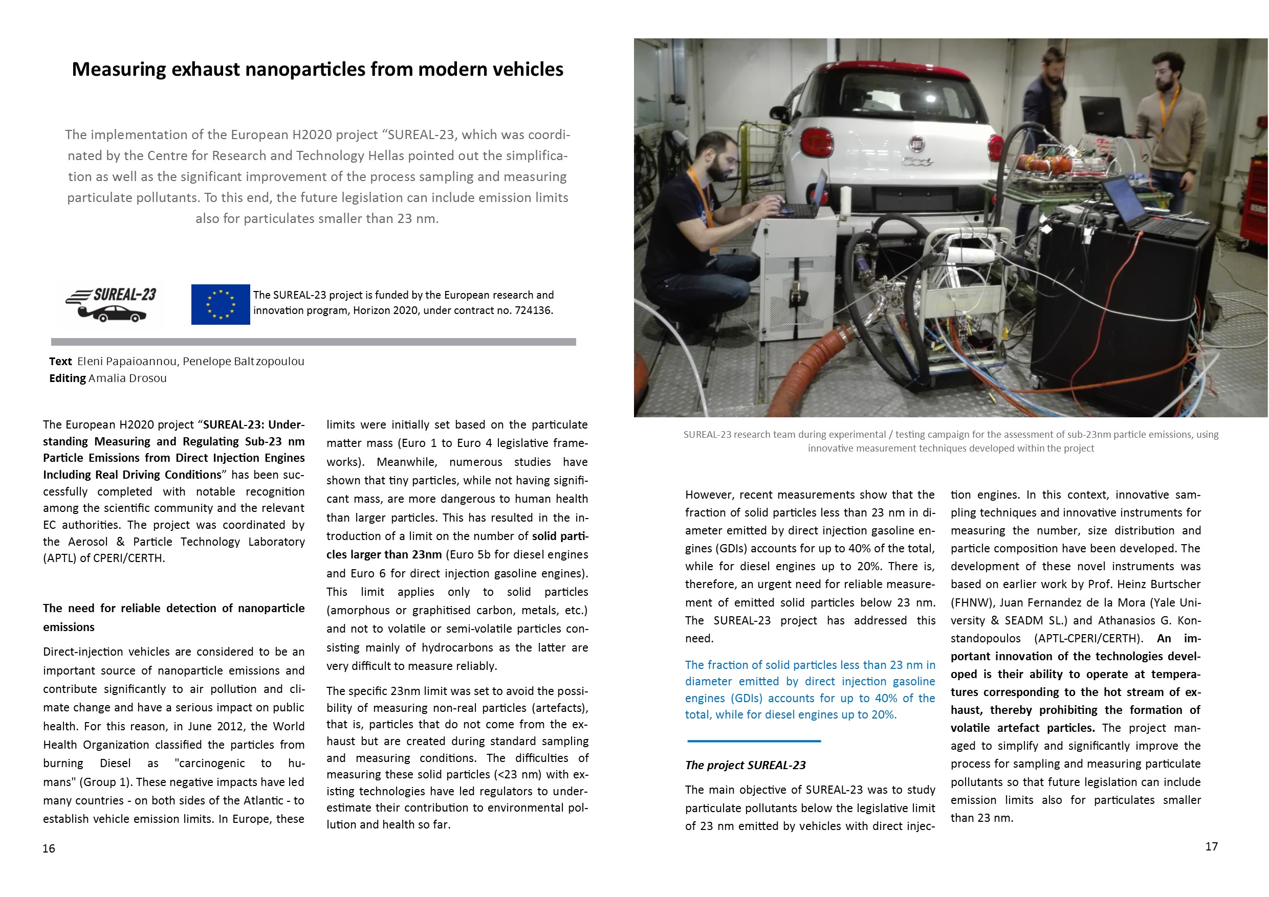 The implementation of the European H2020 project “SUREAL-23, which was coordinated by the Centre for Research and Technology Hellas pointed out the simplification as well as the significant improvement of the process sampling and measuring particulate pollutants.