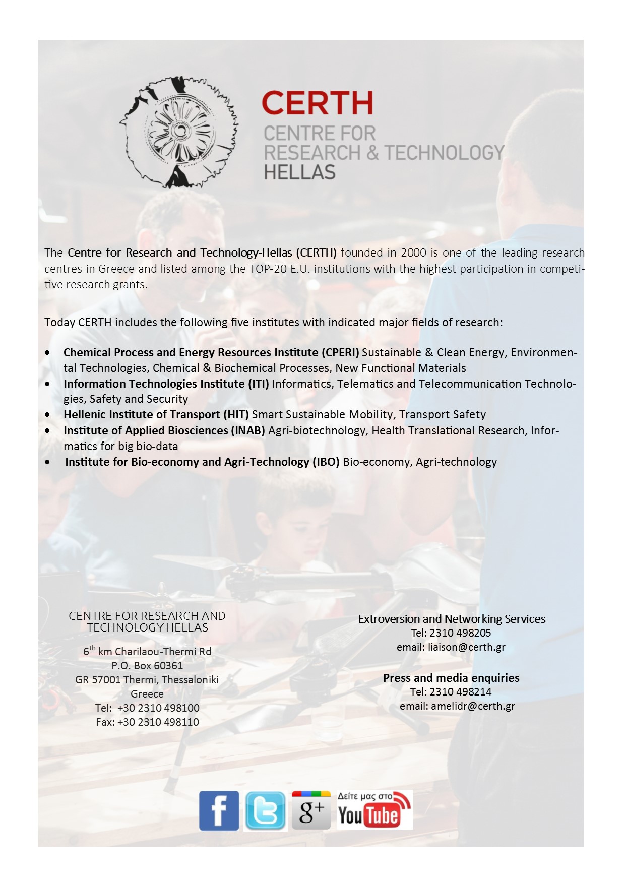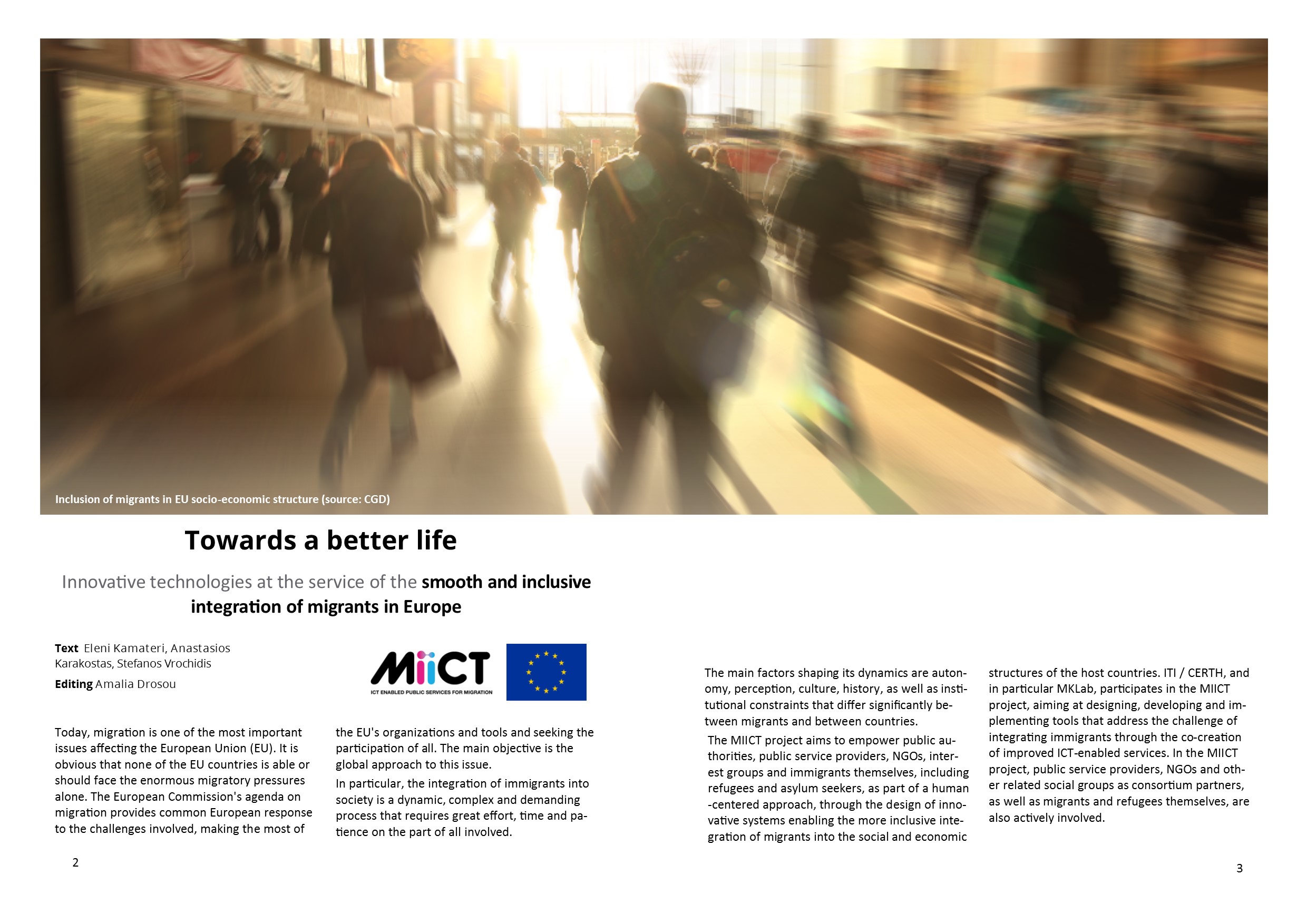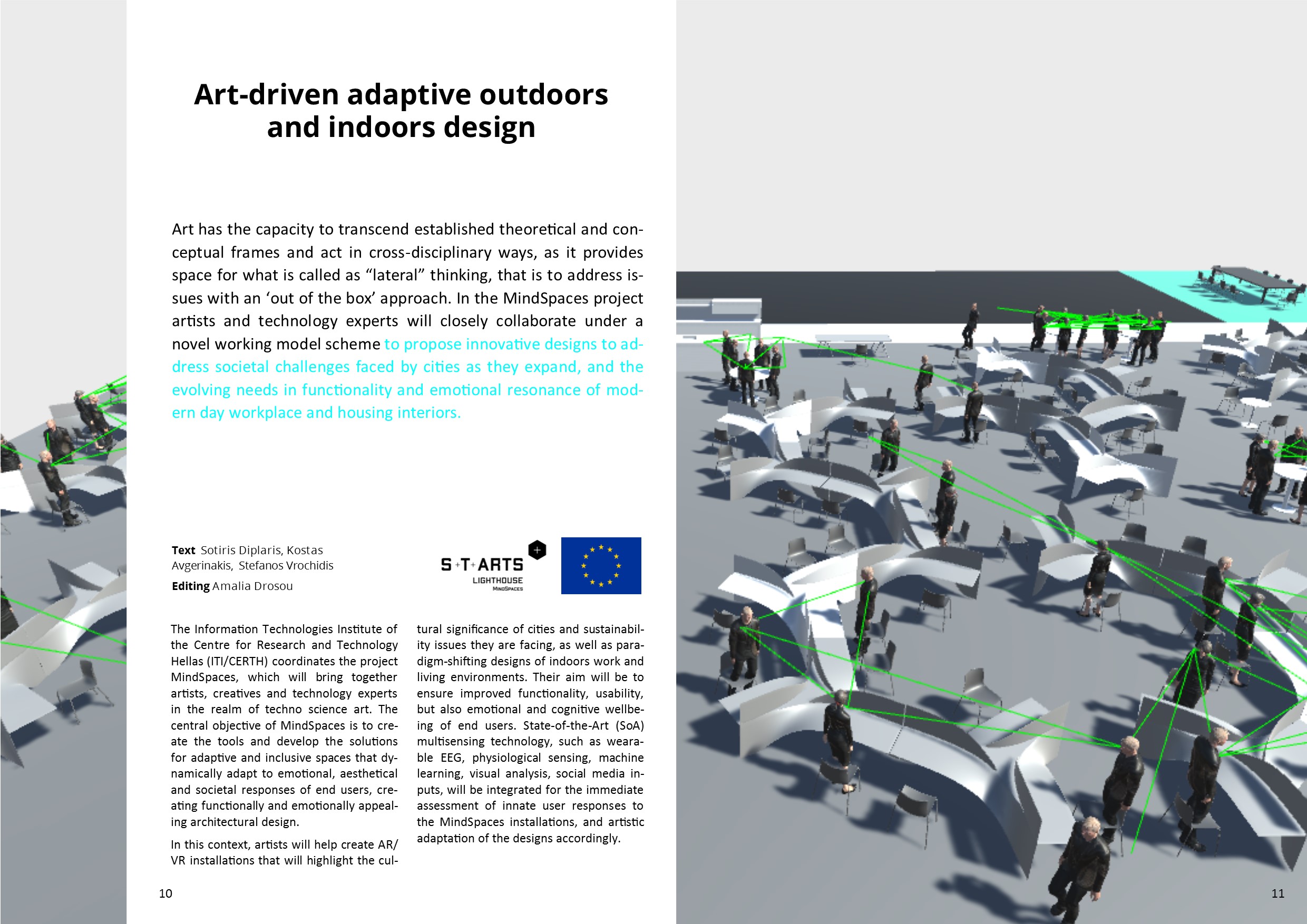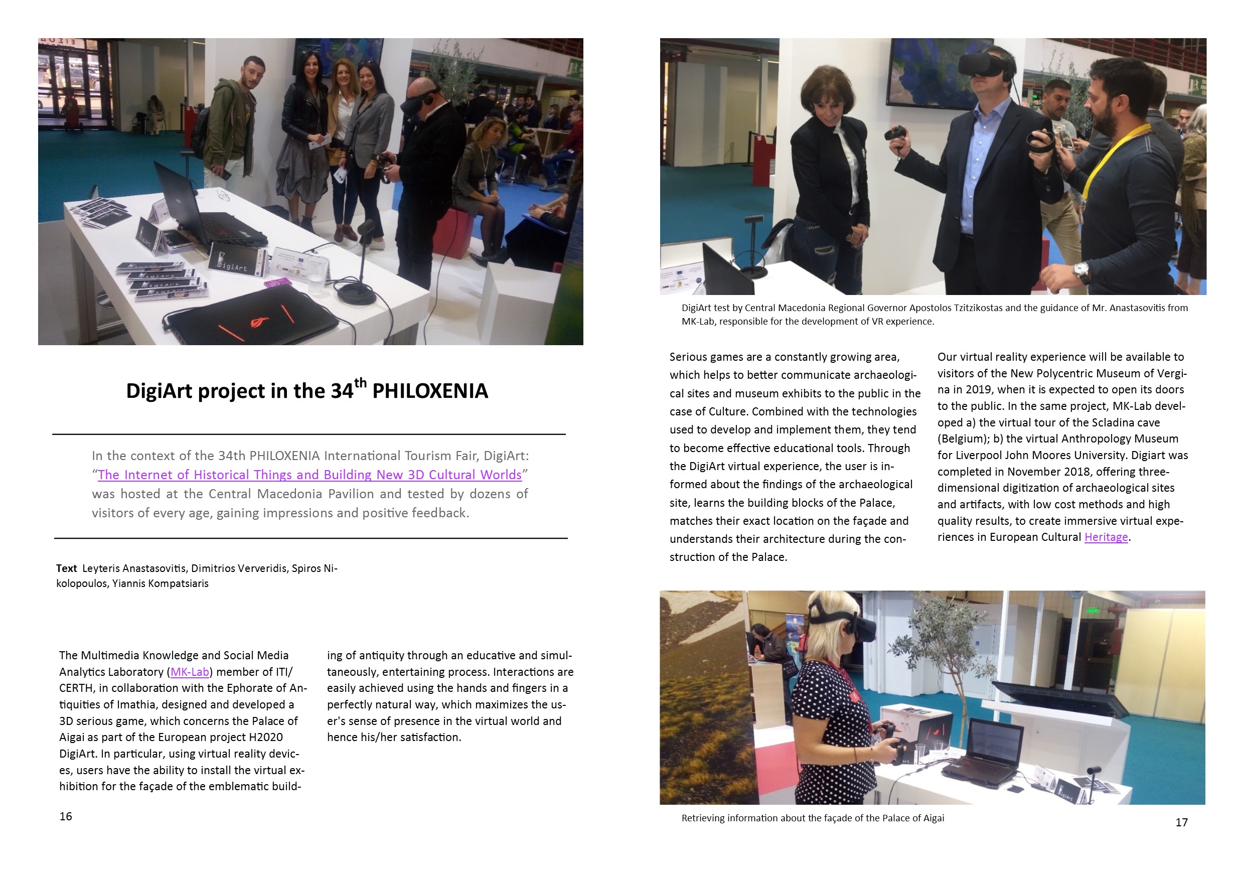Content ITI in ICT 2018 Research and Innovation Event ITI presented results from projects it is either coordinating or participating at the largest exhibition event of the European Union on the topic of Information and Communication Technologies Towards a better life Innovative technologies at the service of the smooth and inclusive integration of migrants in Europe High level distinction at European level Dr. Evangelos Bekiaris becomes the Head of the European ECTRI Association Remote Assessment and Disease Relapse in Alzheimer’s Disease Development and validation technologically of advanced and sensitive measurements of the daily problems of people who are at the initial stage of AD Art-driven adaptive outdoors and indoors design Creation of tools and development of solutions for adaptive and inclusive spaces that dynamically adapt to emotional, aesthetical and societal responses of end users Open Labs: “Little Archeologists Co-operation of CERTH with the Public Library of Thermi for training school children in 3D technologies on the topic of culture and art Safe and efficient road transport without casualties and serious injuries on European urban roads The 4th General Assembly (GA) of the “C-MobILE (Accelerating C-ITS Mobility Innovation and deployment in Europe)” project took place at the Conference Centre of Centre for Research and Technology Hellas DigiArt project in the 34th PHILOXENIA Co-operation of CERTH with the Public Library of Thermi for training school children in 3D technologies on the topic of culture and art |