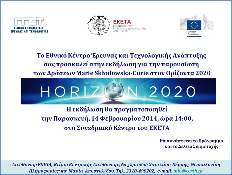 "The Marie Skłodowska-Curie Actions in Horizon 2020" @ CERTH