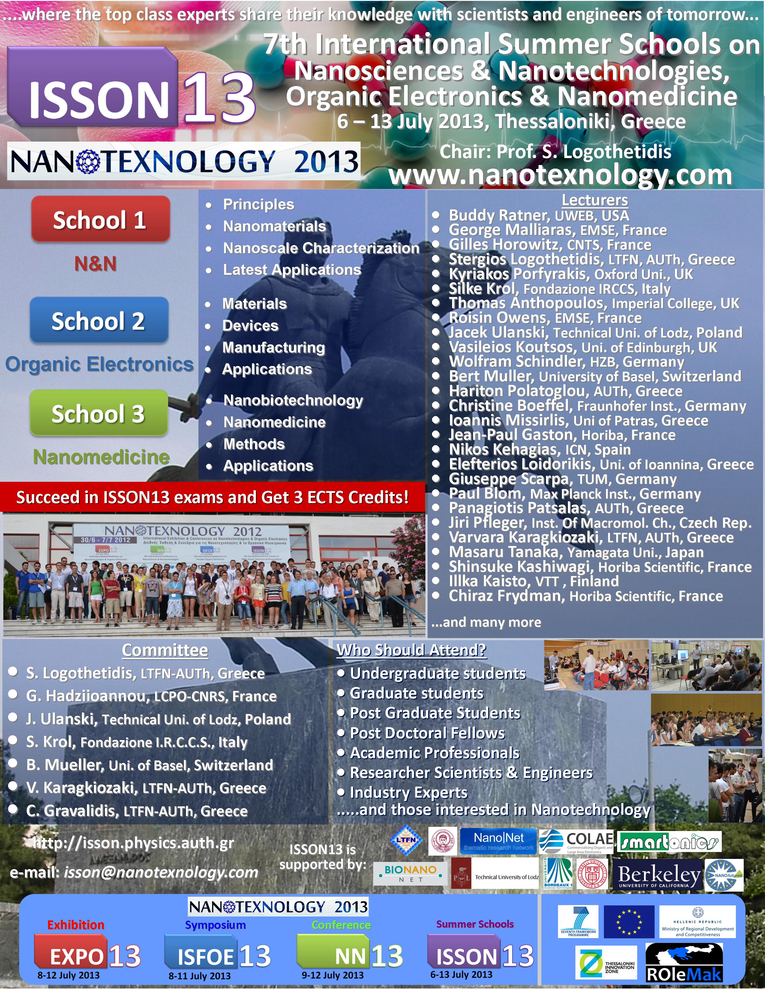 >> The ISSON Summer Schools will give the opportunity to young researchers and early-career scientists and engineers to participate in a series of lectures on the emerging fields of Nanosciences & Nanotechnologies.