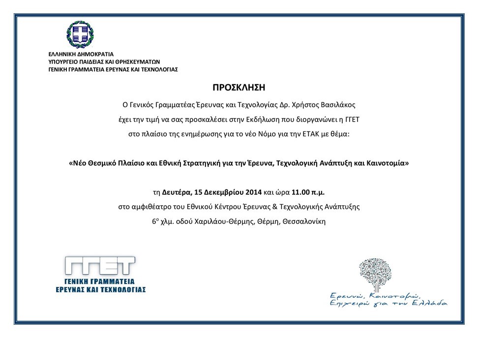 - Ενημερωτική Εκδήλωση της ΓΓΕΤ / ΥΠΑΙΘ
