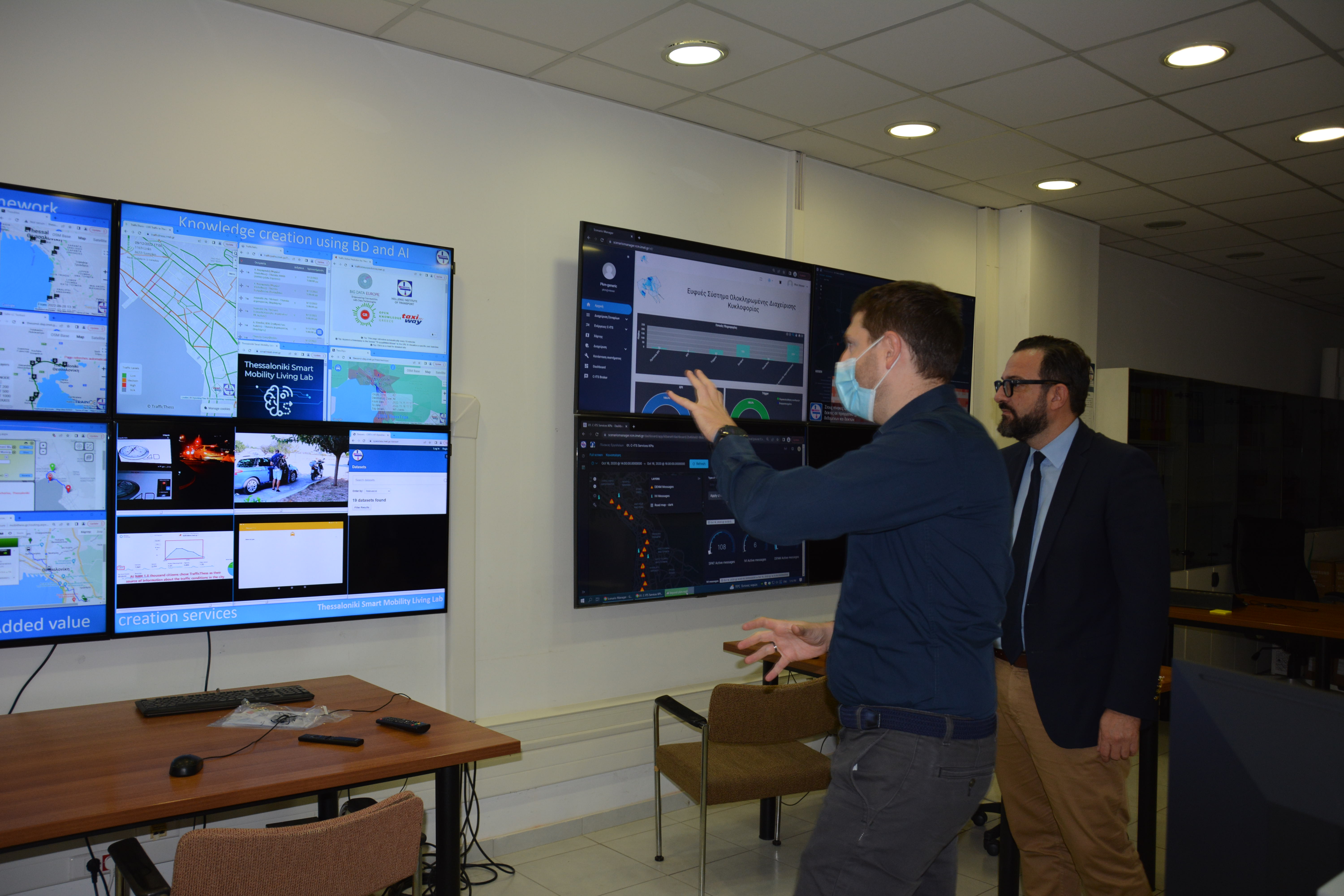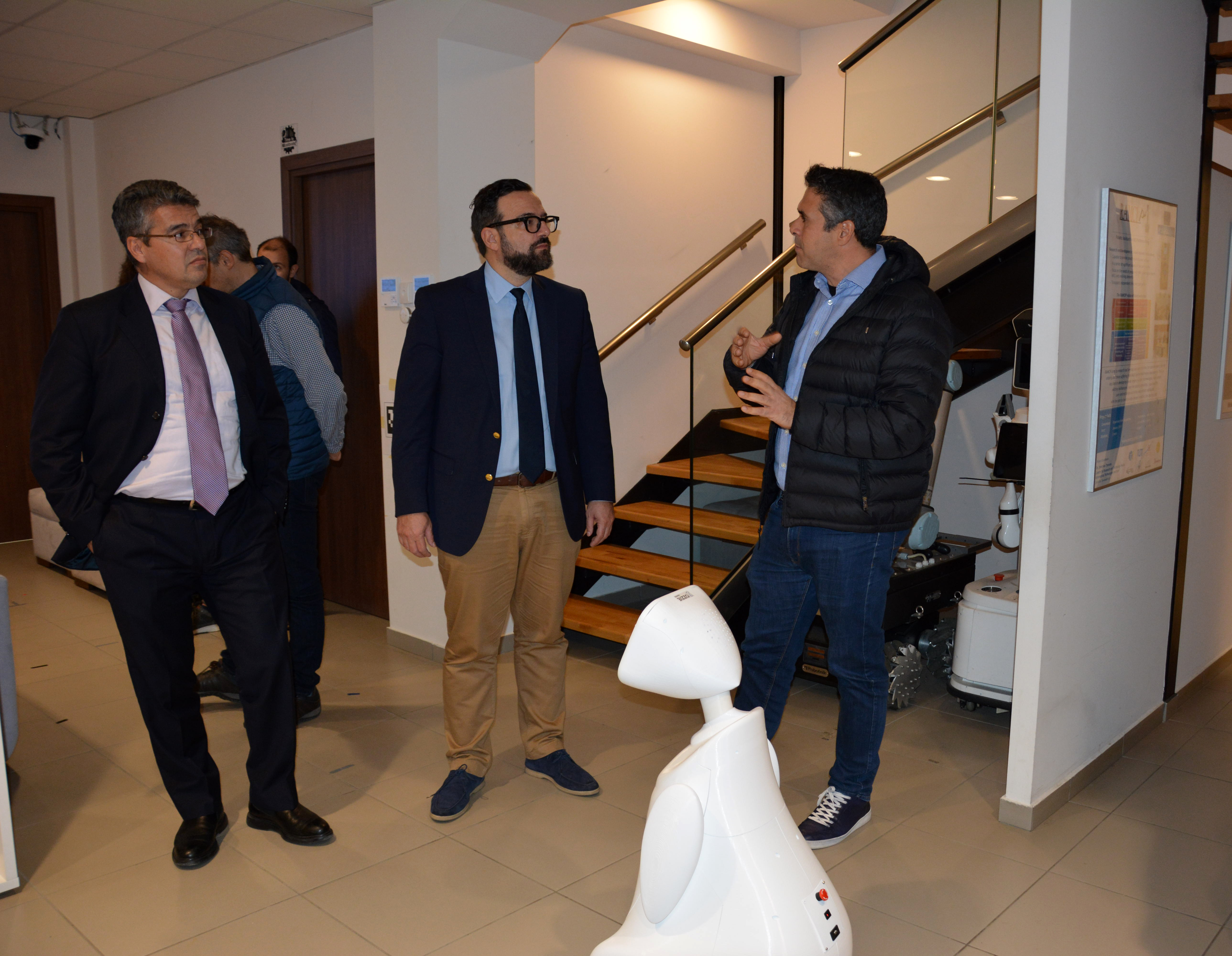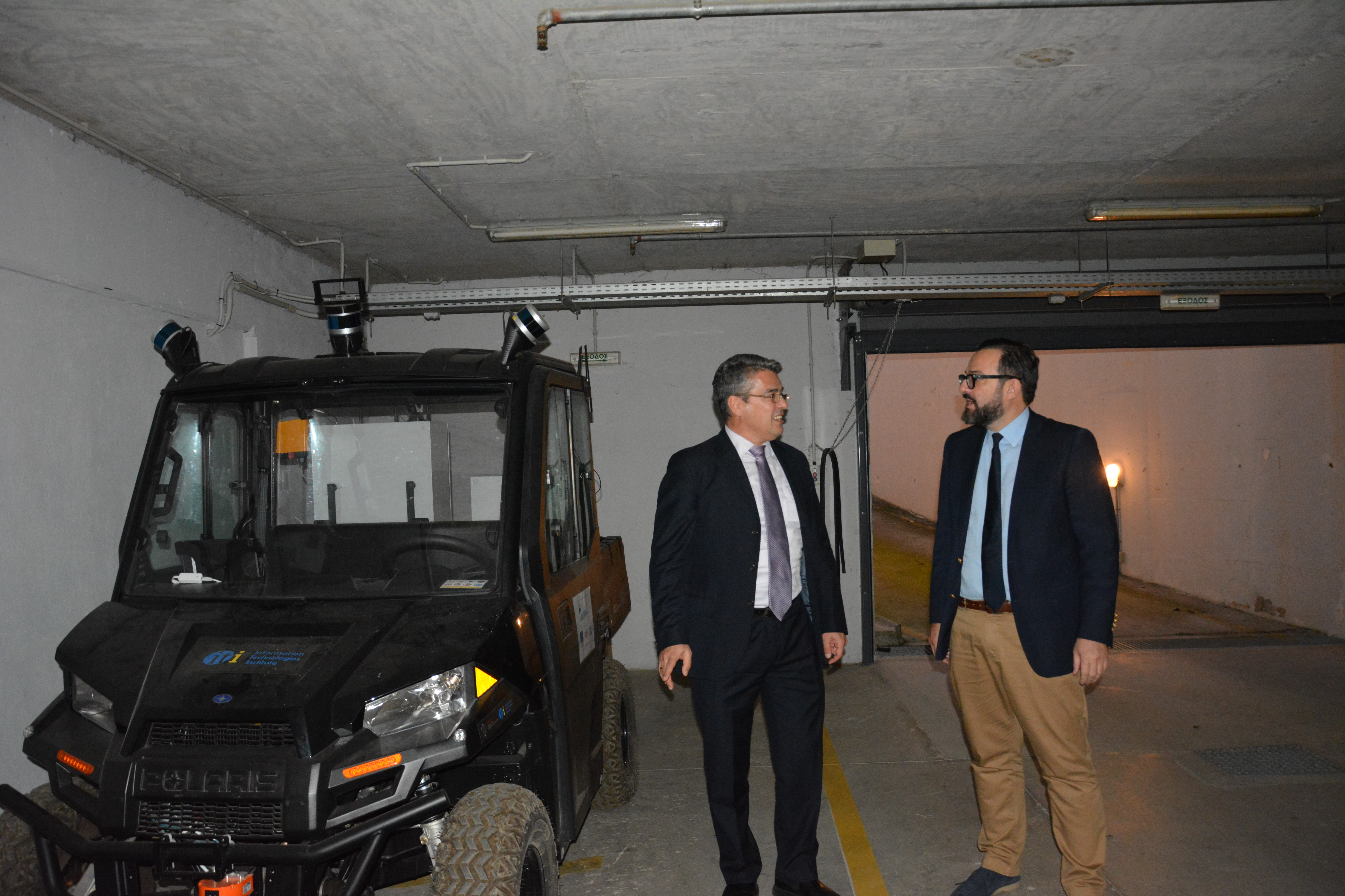 Ακολούθησε επίσκεψη στο Ινστιτούτο Βιώσιμης Κινητικότητας και Δικτύων Μεταφορών (ΙΜΕΤ) όπου ο κ. Ταραντίλης επισκέφθηκε τον δυναμικό προσομοιωτή οδήγησης αυτοκινήτου και το Ζωντανό Εργαστήριο Διαχείρισης Δεδομένων και Υπηρεσιών του ΙΜΕΤ. Εκεί είδε, επιπλέον από κοντά και ενημερώθηκε για τις δυνατότητες του αυτοκινούμενου οχήματος του ΕΚΕΤΑ|ΙΠΤΗΛ.