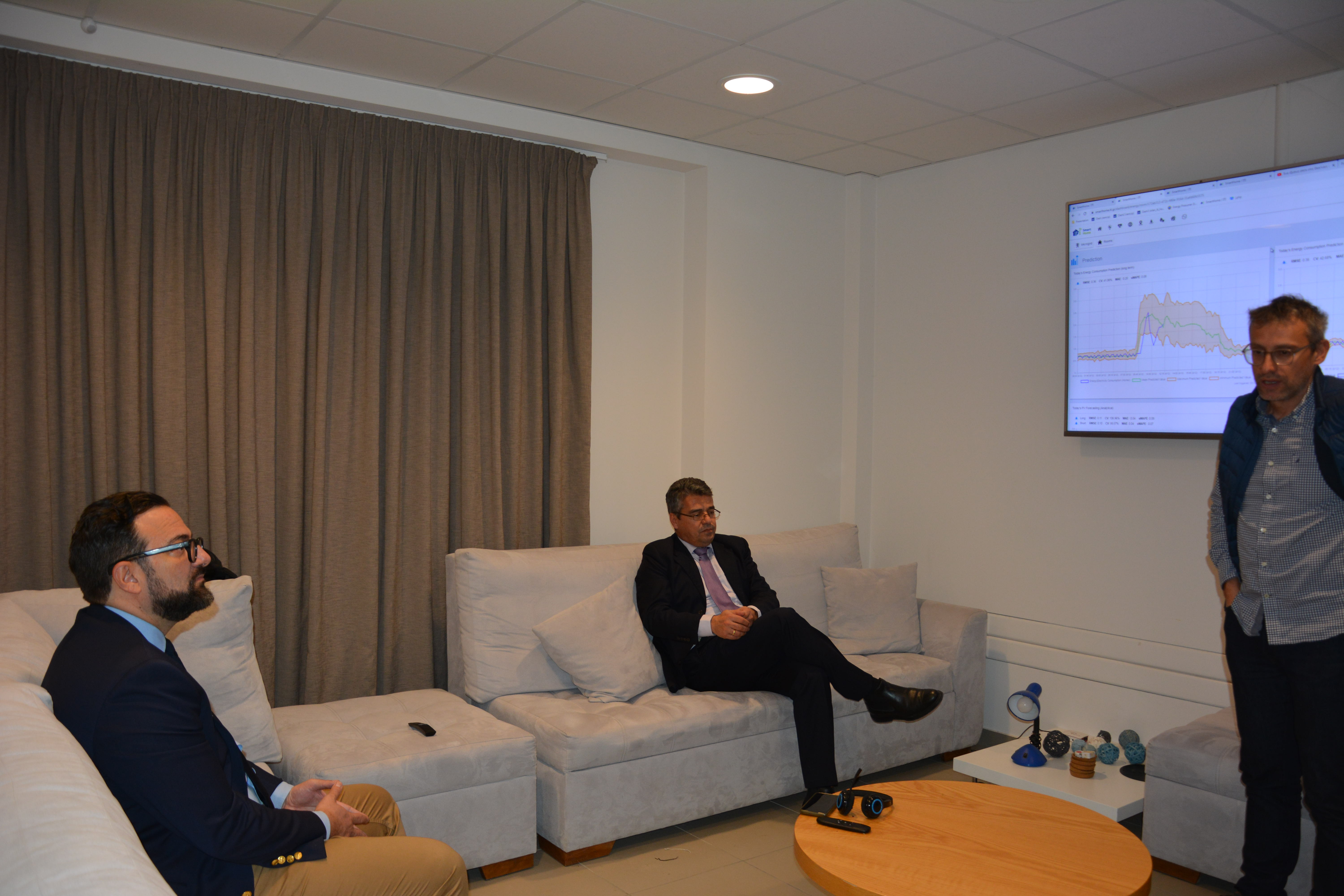 Η ξενάγηση ολοκληρώθηκε με την επίσκεψη στο Έξυπνο Σπίτι του Ινστιτούτου Τεχνολογιών Πληροφορικής και Επικοινωνιών (ΙΠΤΗΛ), όπου ο κ. Ταραντίλης γνώρισε το ρομποτ - οικιακό βοηθό, που υποστηρίζει την αυτόνομη διαβίωση ηλικιωμένων ανθρώπων, ενώ του έγινε επίδειξη τεχνολογιών εξοικονόμησης ενέργειας με τη συνδυαστική χρήση ανανεώσιμων πηγών και αποθήκευσης ενέργειας (Μικροδίκτυα Νέας Γενιάς), καθώς και καινοτόμες λύσεις για έξυπνη φόρτιση στόλου ηλεκτρικών οχημάτων. Παράλληλα, παρουσιάστηκαν οι εφαρμογές ηλεκτρονικής υγείας.