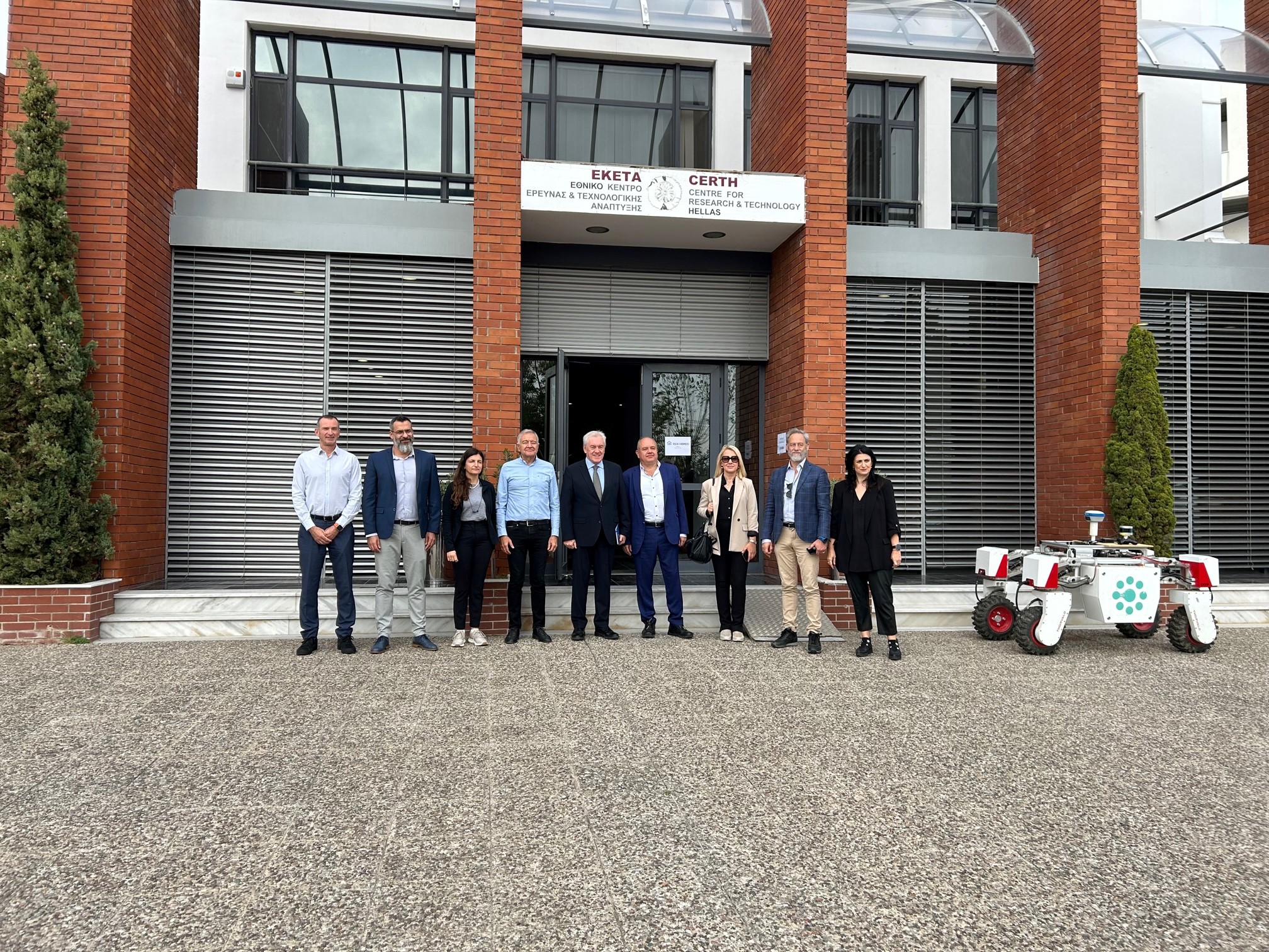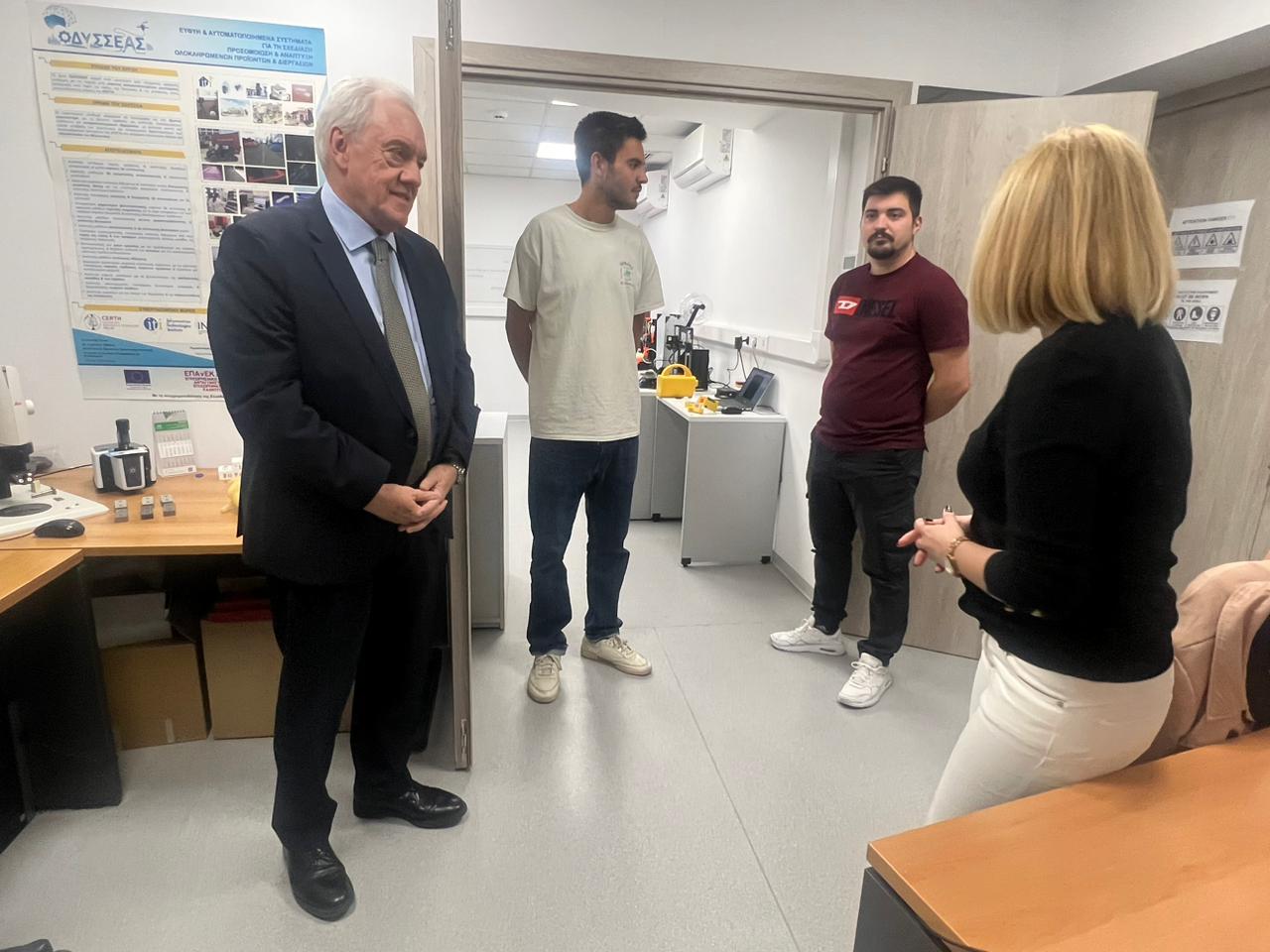 Η επίσκεψη του κ. Κυριαζή ολοκληρώθηκε με μια σύντομη ξενάγησή του στο Ινστιτούτο Τεχνολογικών Πληροφορικής και Επικοινωνιών (ΙΠΤΗΛ) του ΕΚΕΤΑ, όπου ενημερώθηκε για το σύστημα απομακρυσμένου ελέγχου σμήνους εναέριων οχημάτων με ενισχυμένες ικανότητες αντίληψης και τη μονάδα προσθετικής κατασκευής του ΕΚΕΤΑ, ένα από τα πιο σύγχρονα εργαστήρια τρισδιάστατης εκτύπωσης στην Ελλάδα.
