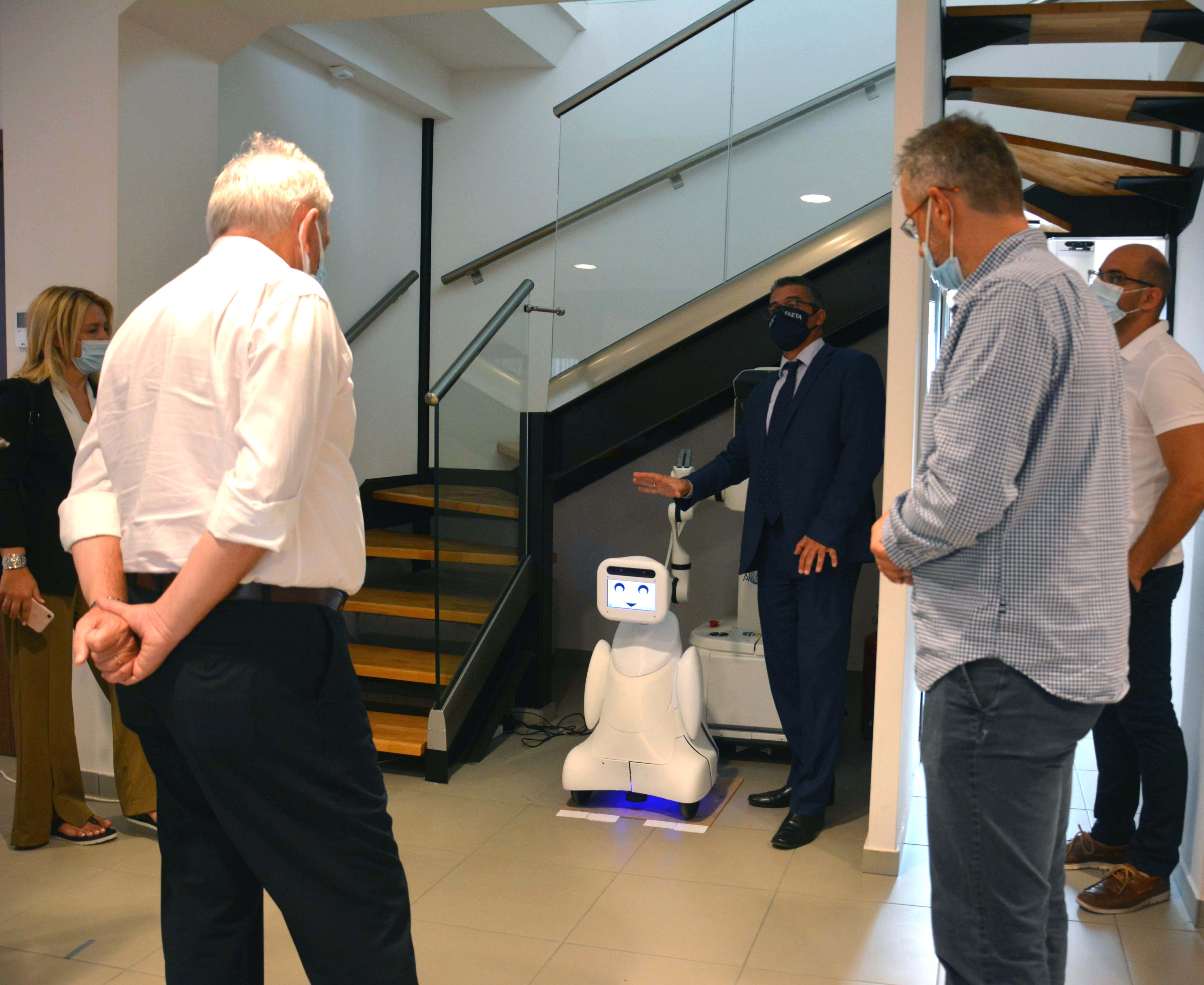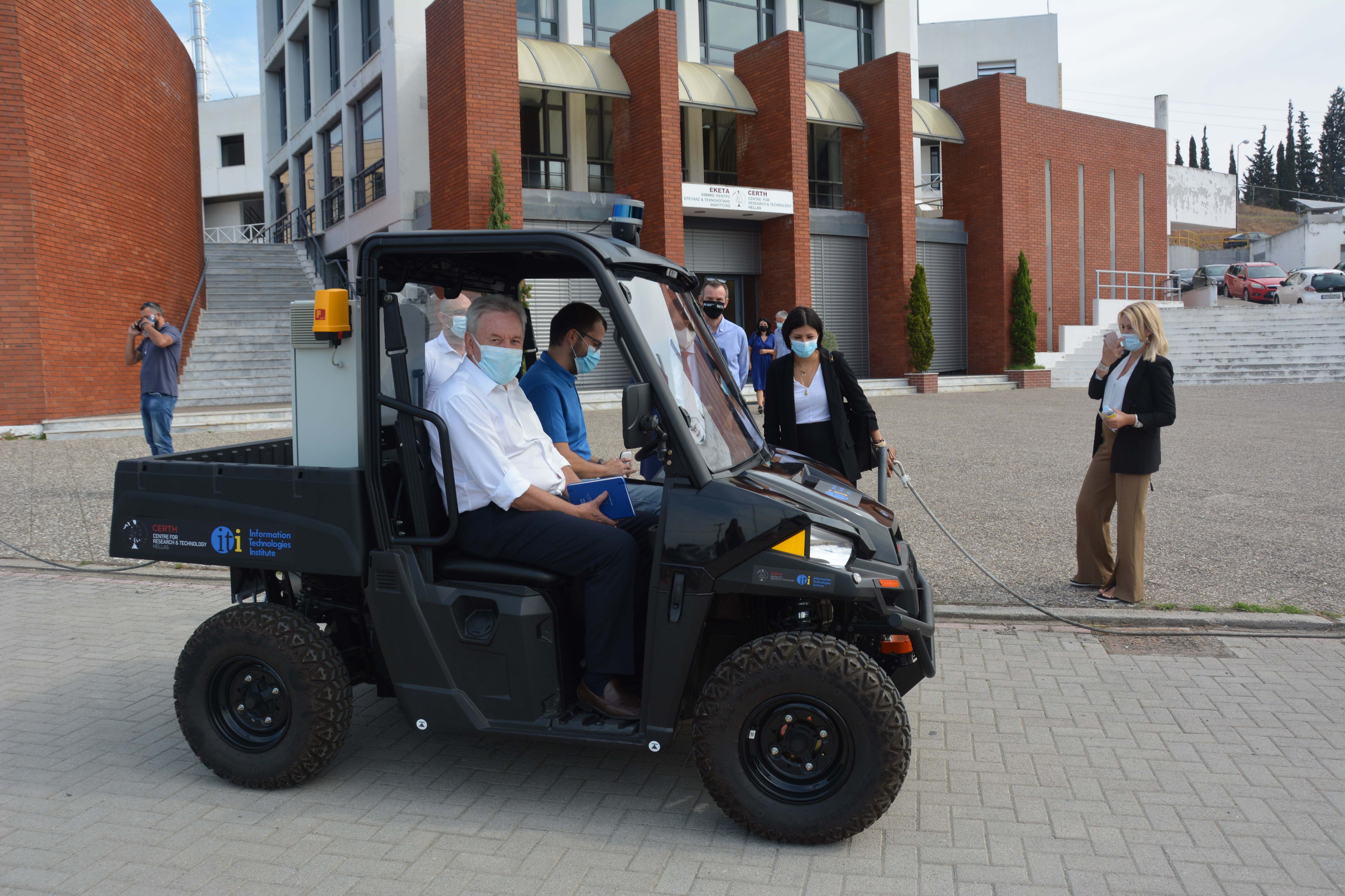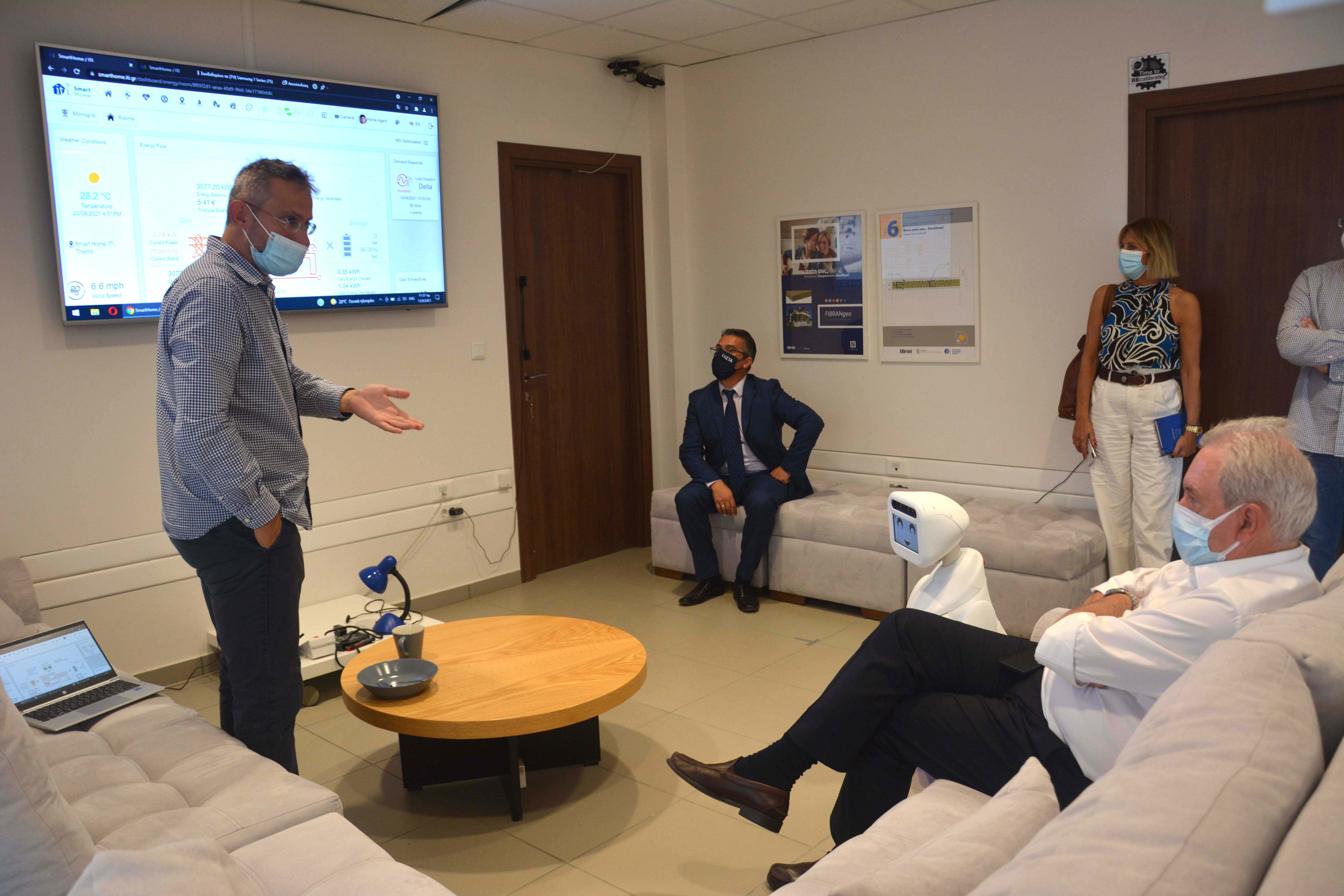 Η ξενάγηση ξεκίνησε με την επίσκεψη στο Έξυπνο Σπίτι του Ινστιτούτου Τεχνολογιών Πληροφορικής και Επικοινωνιών (ΙΠΤΗΛ), όπου ο κ. Κυριαζής έφτασε με το αυτοκινούμενο όχημα του ΕΚΕΤΑ | ΙΠΤΗΛ. Εκεί γνώρισε το ρομποτ - οικιακό βοηθό, που υποστηρίζει την αυτόνομη διαβίωση των ηλικιωμένων ανθρώπων, ενώ έγινε επίδειξη της πλατφόρμας διαχείρισης μικροδικτύων. Ακόμη πραγματοποιήθηκε επίδειξη τεχνολογιών σχετικών με την ανίχνευση μη επανδρωμένων αεροσκαφών με τεχνολογίες τεχνητής νοημοσύνης αλλά και επίδειξη εφαρμογών ηλεκτρονικής υγείας.