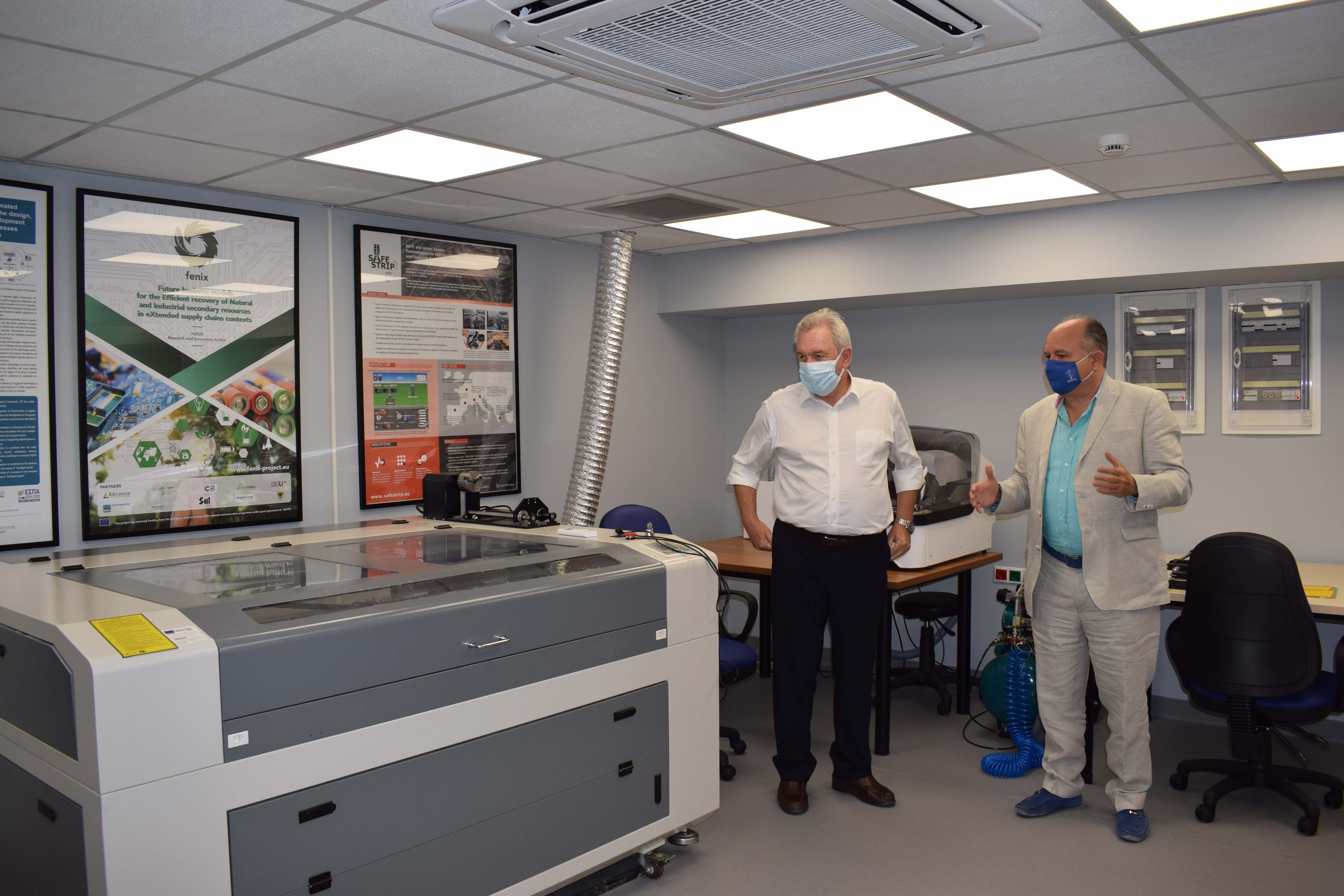 Ακολούθησε επίσκεψη στο Ινστιτούτο Βιώσιμης Κινητικότητας και Δικτύων Μεταφορών (ΙΜΕΤ) όπου ο κ. Κυριαζής επισκέφθηκε το δυναμικό προσομοιωτή οδήγησης αυτοκινήτου, το Ζωντανό Εργαστήριο Διαχείρισης Δεδομένων και Υπηρεσιών του ΙΜΕΤ και το νέο Εργαστήριο Βιομηχανίας 4.0 για τις Μεταφορές.