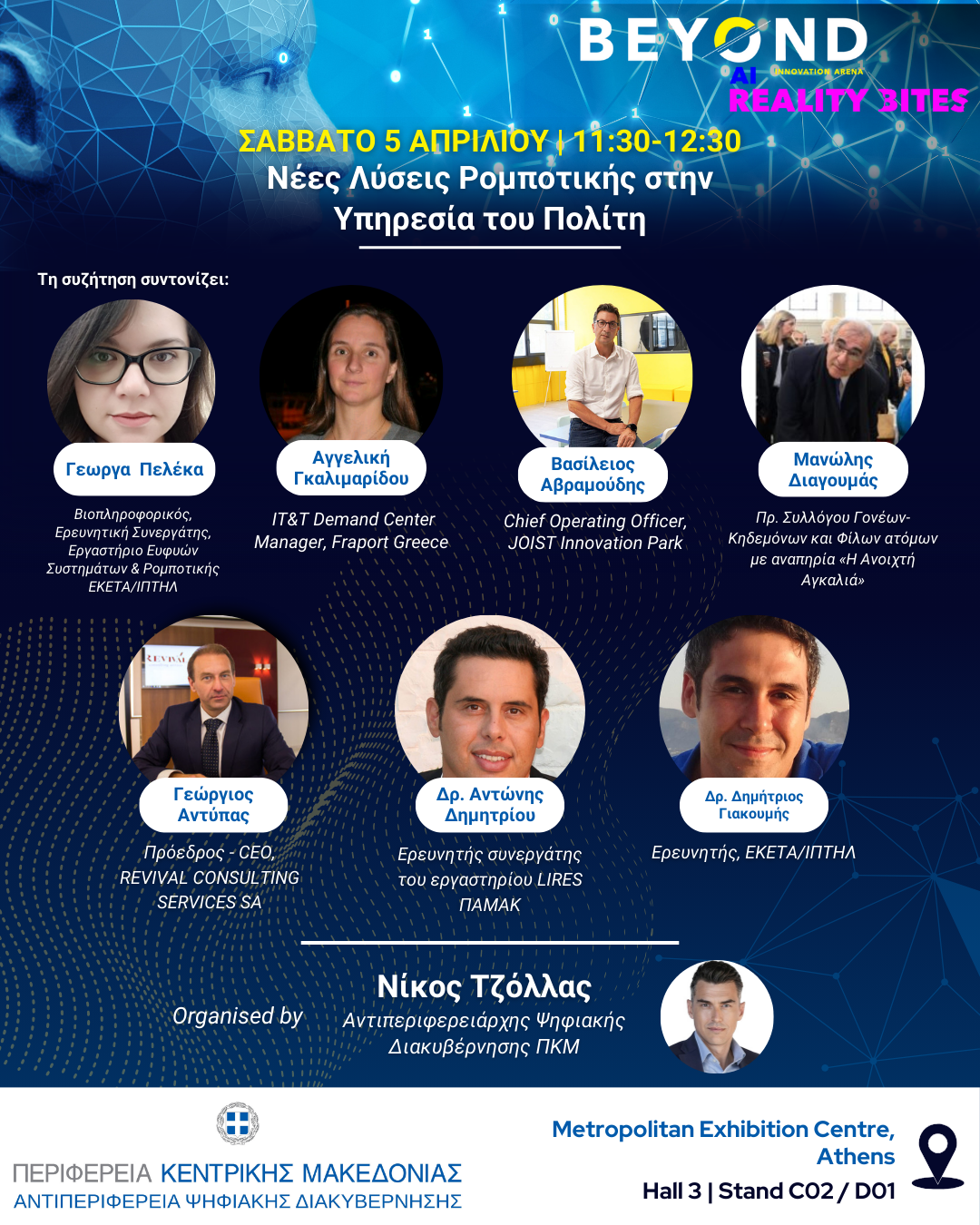 Το Εθνικό Κέντρο Έρευνας και Τεχνολογικής Ανάπτυξης συμμετέχει και φέτος δυναμικά στη διεθνή έκθεση ψηφιακής τεχνολογίας και καινοτομίας BEYOND, στο περίπτερο της Περιφέρειας Κεντρικής Μακεδονίας. Η έκθεση διοργανώνεται στην Αθήνα, στο Μetropolitan Exhibition Centre, από τις 4-6 Απριλίου 2025.