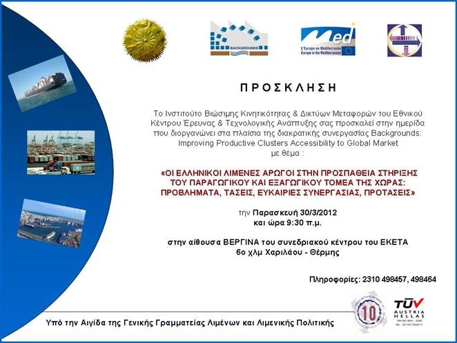 " Οι Ελληνικοί Λιμένες Αρωγοί στην Προσπάθεια Στήριξης του Παραγωγικού και Εξαγωγικού Τομέα της Χώρας: Προβλήματα, Τάσεις, Ευκαιρίες Συνεργασίας, Προτάσεις "