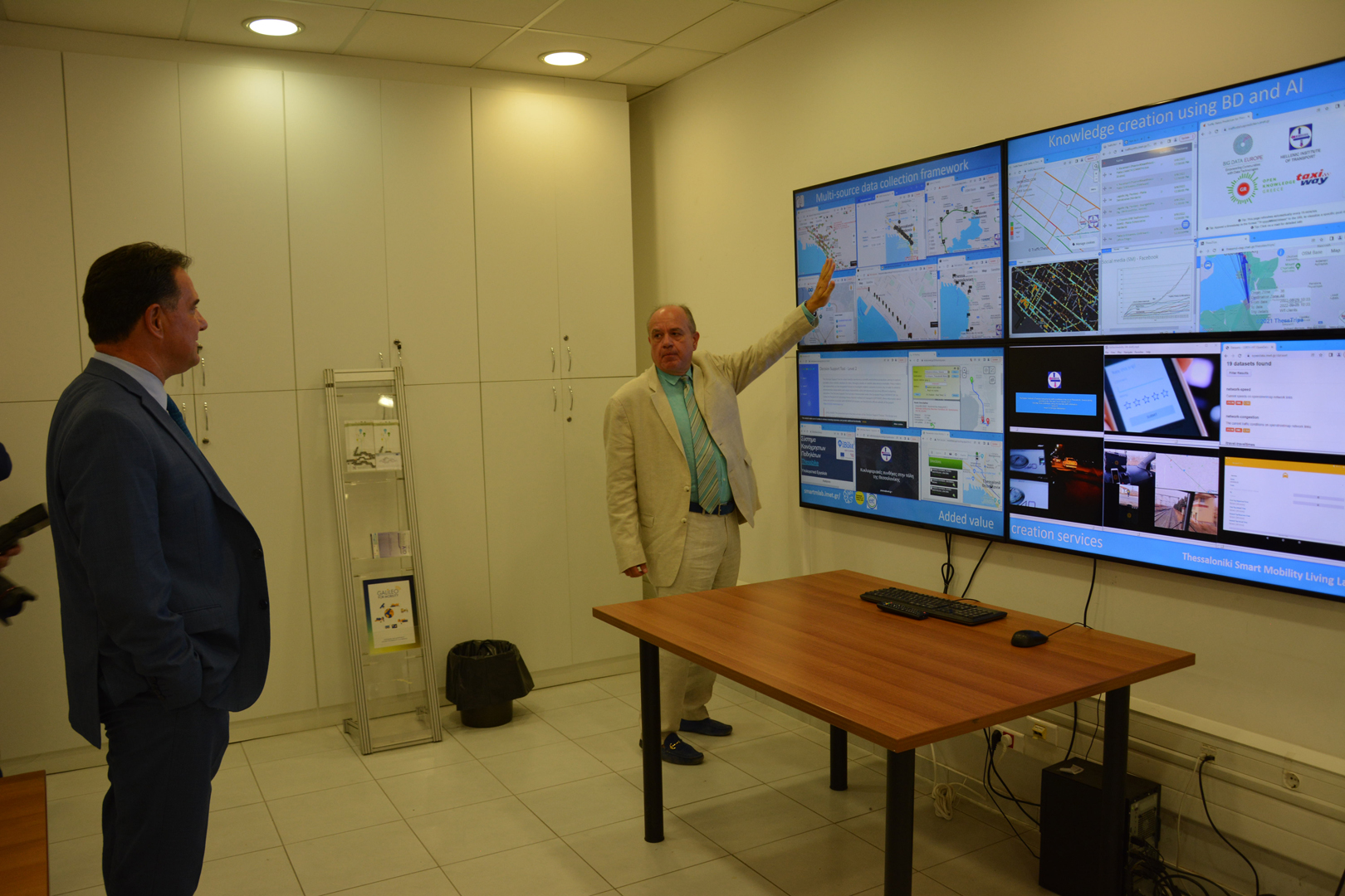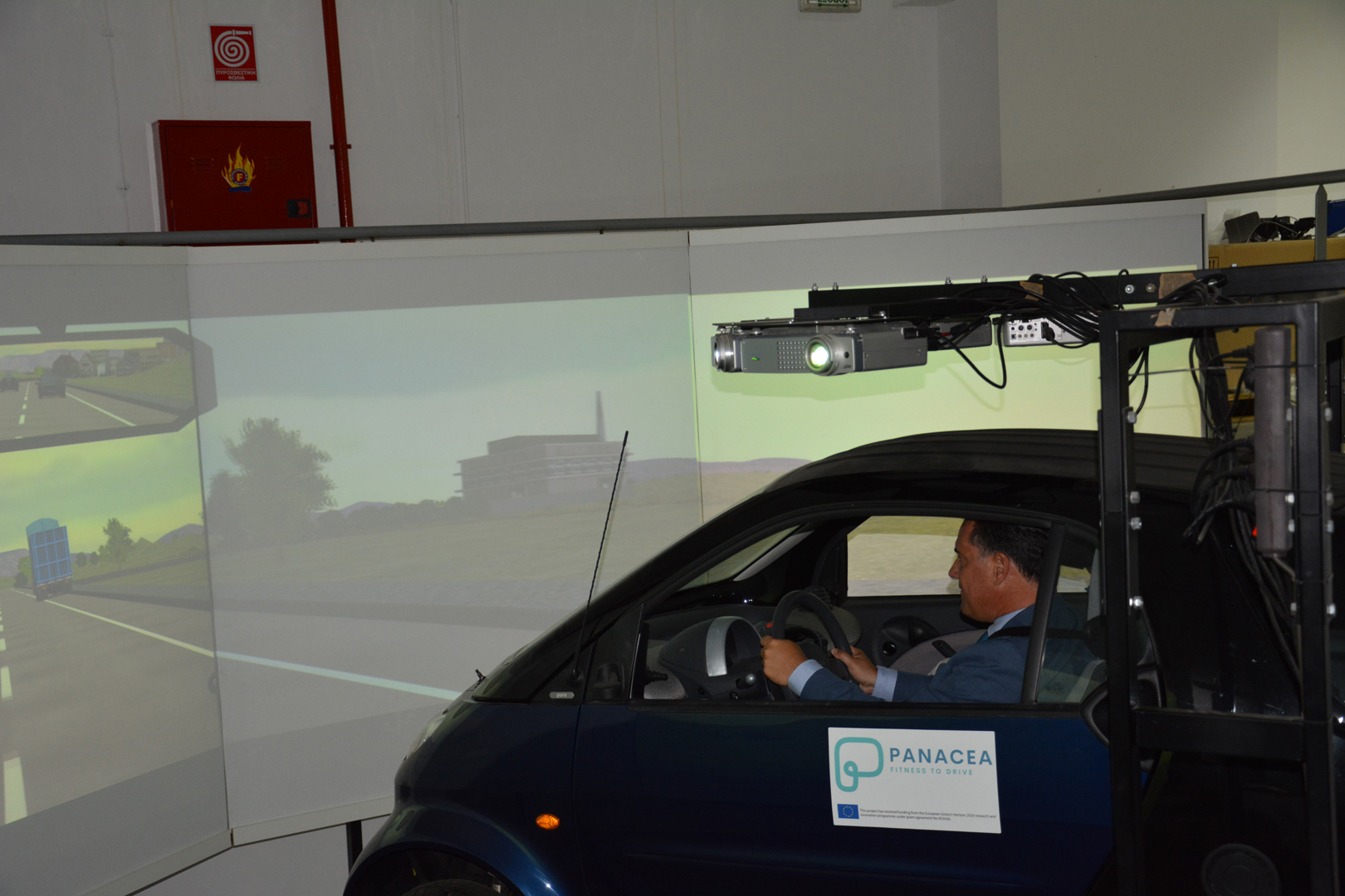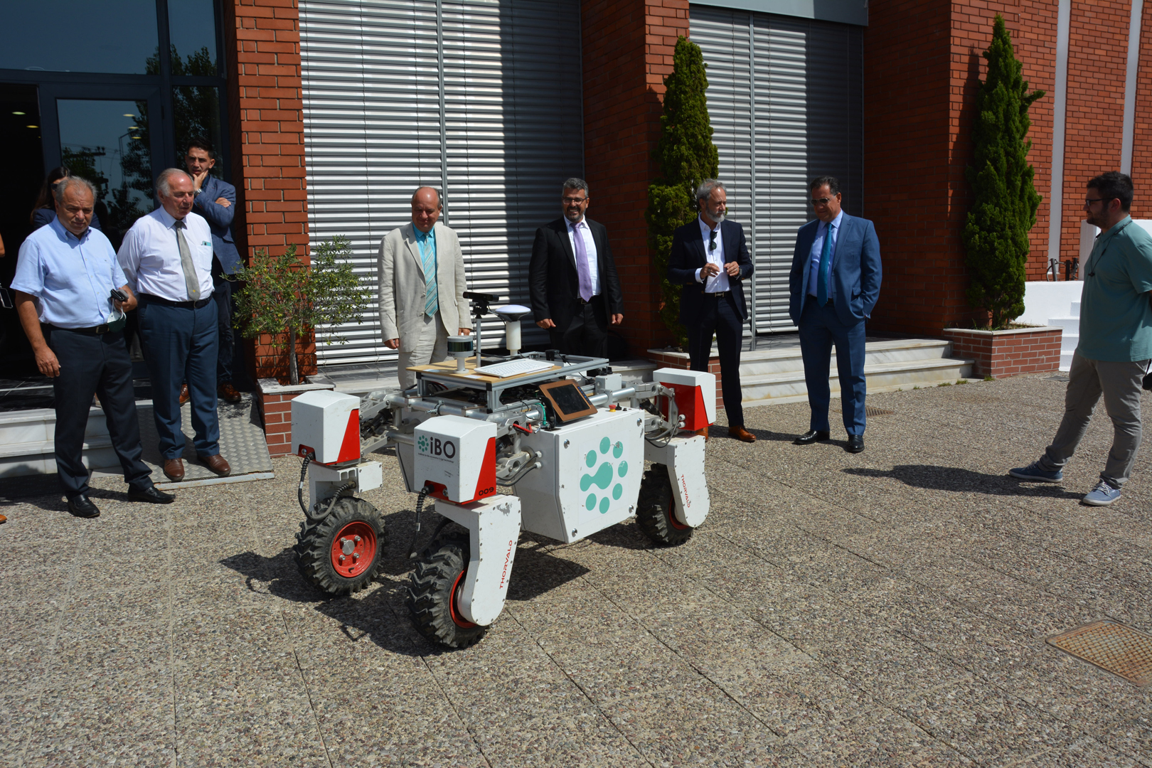 Έπειτα, πραγματοποιήθηκε επίδειξη του συστήματος αλληλεπίδρασης ανθρώπου-ρομπότ, το οποίο βρίσκεται στην υπηρεσία του γεωργού και στη συνέχεια ξεναγήθηκε στον δυναμικό προσομοιωτή οδήγησης και ενημερώθηκε για το ζωντανό εργαστήριο διαχείρισης δεδομένων.