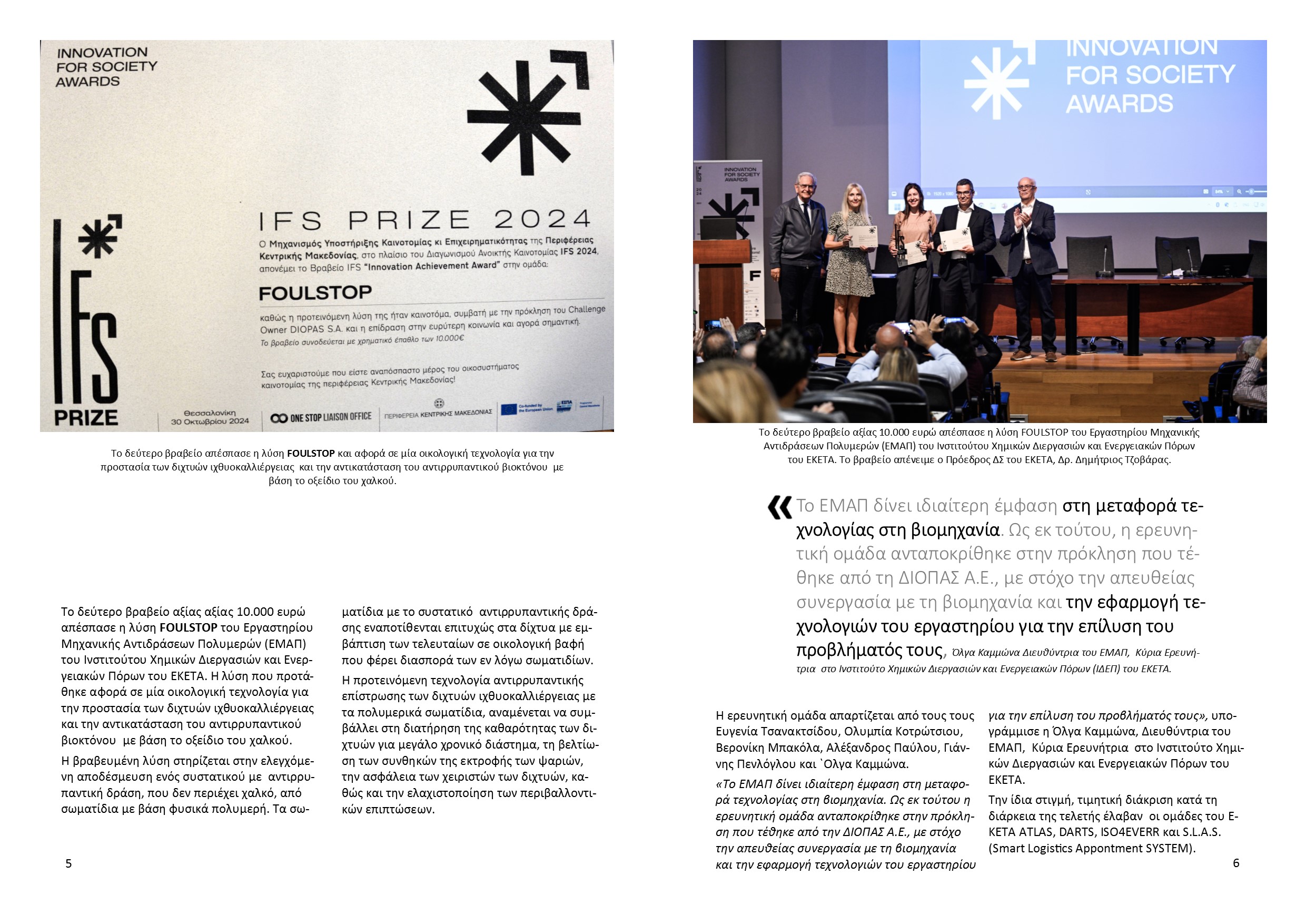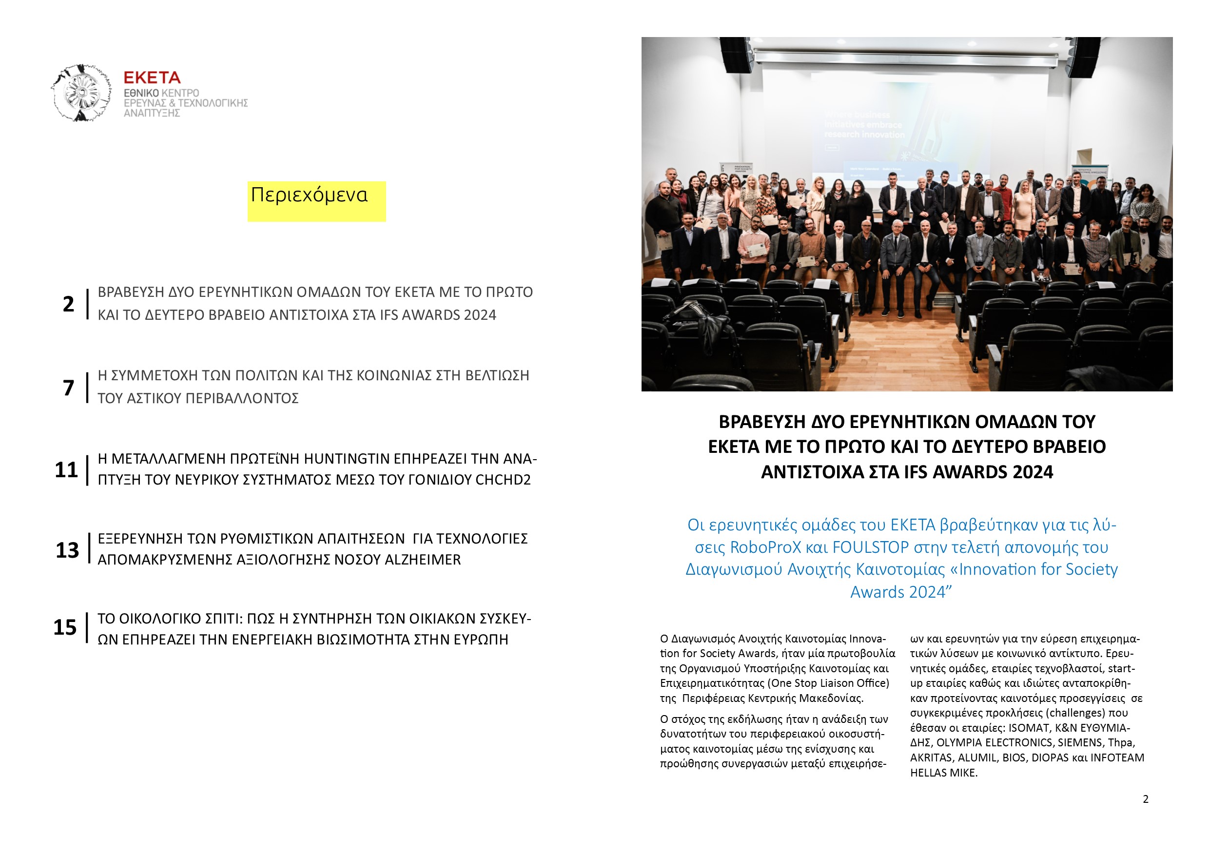 1. Βράβευση δύο ερευνητικών ομάδων του ΕΚΕΤΑ με το πρώτο και το δεύτερο βραβείο αντίστοιχα στα IFS Awards 2024