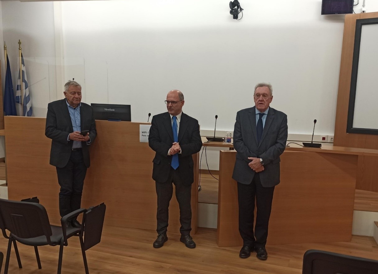 Ο Διευθυντής του ΕΚΕΤΑ| ΙΔΕΠ, κ. Σπυρίδων Βουτετάκης και ο υπεύθυνος Παραρτήματος Πτολεμαΐδας, κ. Παναγιώτης Γραμμέλης υποδέχονται τον Γενικό Γραμματέα Έρευνας και Καινοτομίας, κ. Αθανάσιο Κυριαζή
