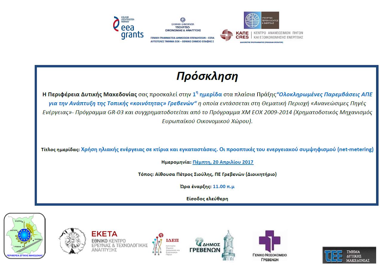 1η Ημερίδα - Χρήση ηλιακής ενέργειας σε κτίρια και εγκαταστάσεις. Οι προοπτικές του ενεργειακού συμψηφισμού (net-metering)