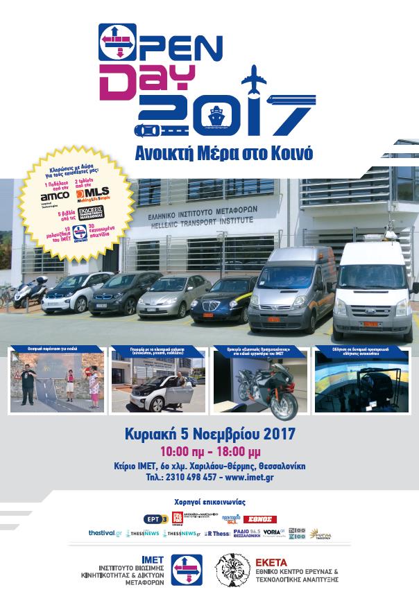 Το Ινστιτούτο Βιώσιμης Κινητικότητας και Δικτύων Μεταφορών (I.MET.) του Εθνικού Κέντρου Έρευνας και Τεχνολογικής Ανάπτυξης (Ε.Κ.Ε.ΤΑ.), ανοίγει τις πύλες του στο ευρύ κοινό στις 5 Νοεμβρίου από τις 10 το πρωί μέχρι τις 6 το απόγευμα και γιορτάζει την έξυπνη και βιώσιμη κινητικότητα για όλους.