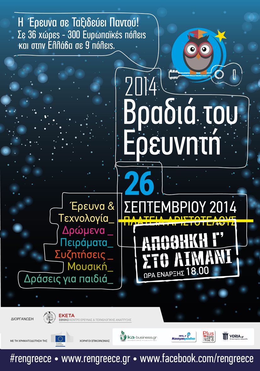 Από τις 6:00 το απόγευμα σας περιμένουμε στην Αποθήκη Γ στο Λιμάνι της Θεσσαλονίκης σε μια βραδιά που θα κεντρίσει το ενδιαφέρον μικρών και μεγάλων. Μια βραδιά γεμάτη έρευνα και τεχνολογία!