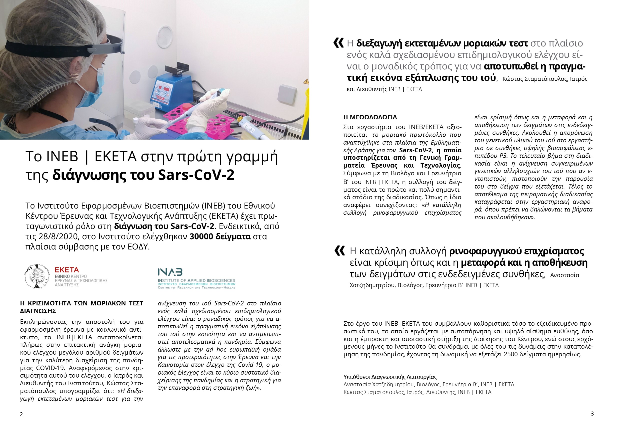 1. Διάγνωση του Sars-Cov-2: To INEB/EKETA στη πρώτη γραμμή