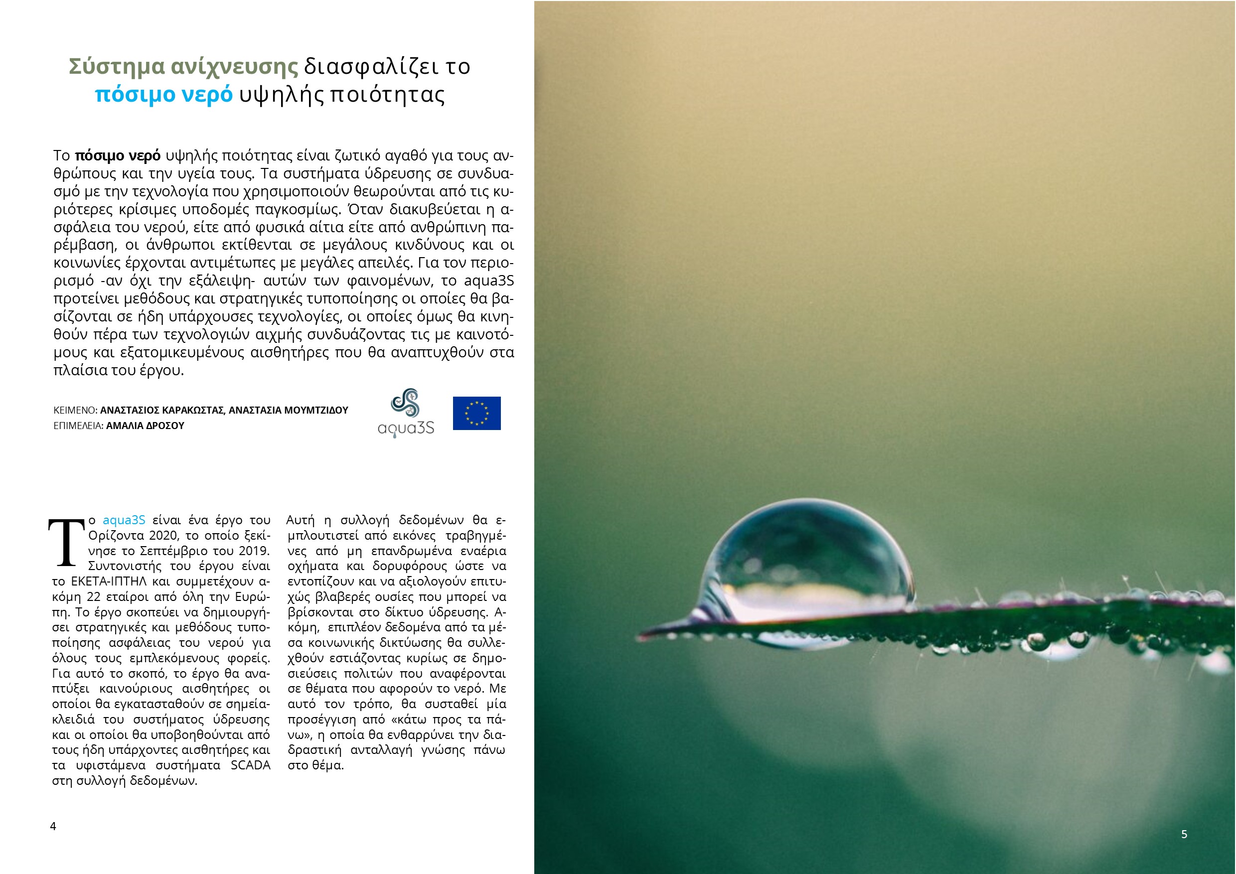 Το ευρωπαϊκό ερευνητικό έργο aqua3s θα υποστηρίξει μέσω σημαντικών προτύπων την ασφάλεια του πόσιμου νερού