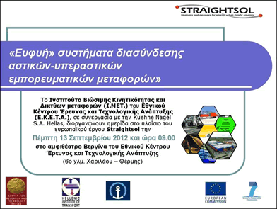 | >> Η ημερίδα διοργανώνεται στα πλαίσια του συγχρηματοδοτούμενου από την Ευρωπαϊκή Επιτροπή ερευνητικού έργου STRAIGHTSOL - STRAtegies and measures for smarter urban freIGHT SOLutions | |
