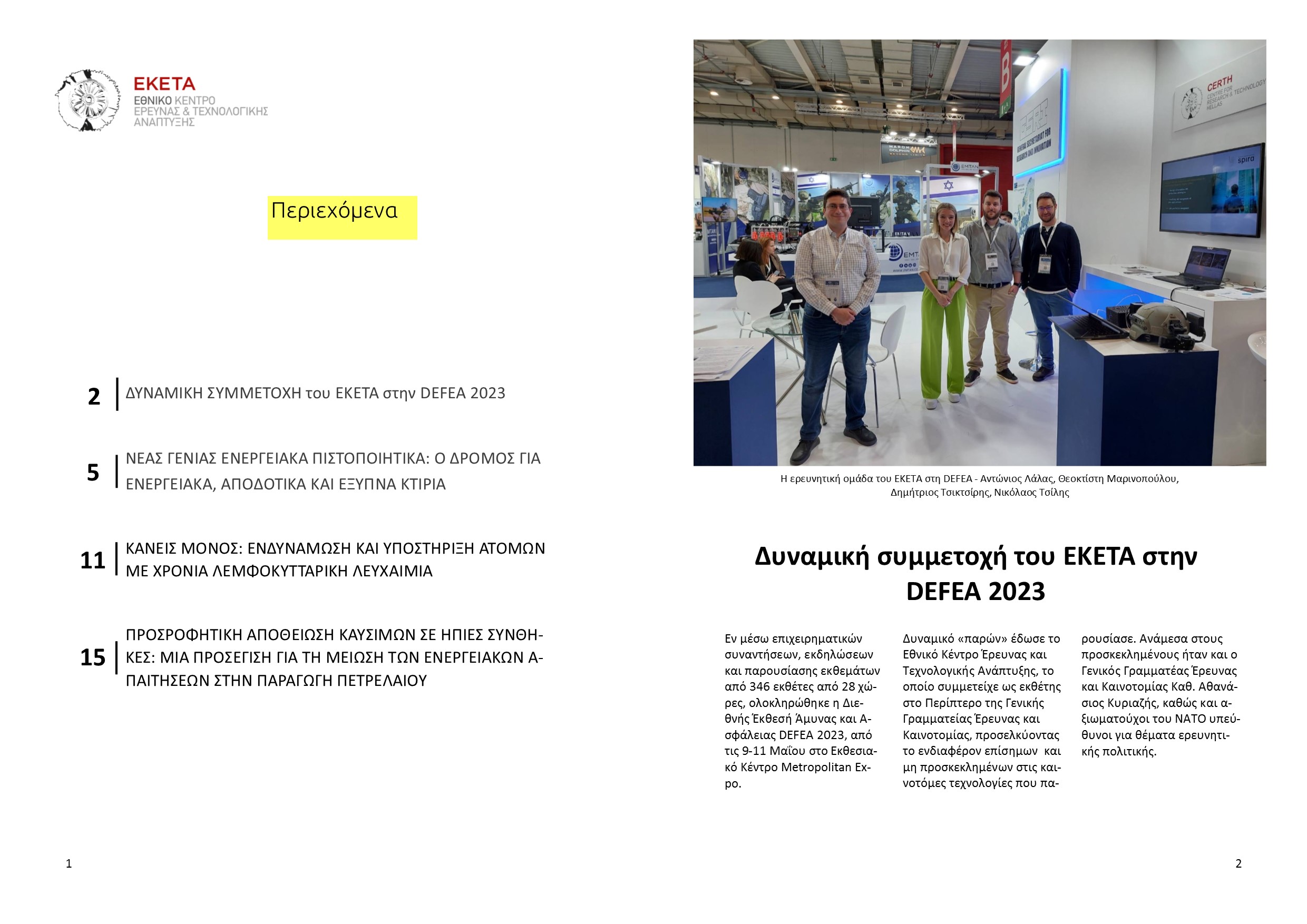 1. Δυναμική συμμετοχή του ΕΚΕΤΑ στην DEFEA 2023