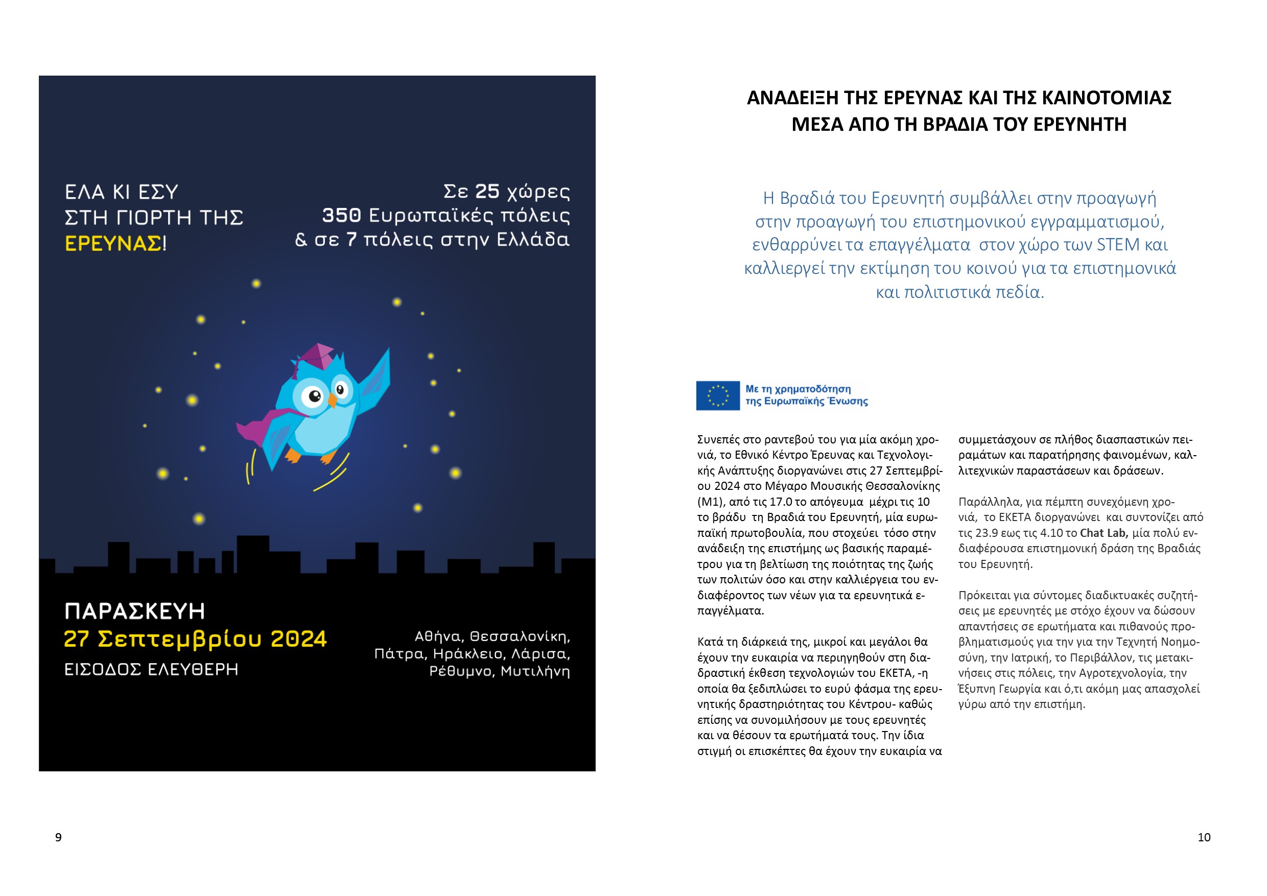 4. Ανάδειξη της έρευνας και της καινοτομίας μέσα από τη Βραδιά του Ερευνητή